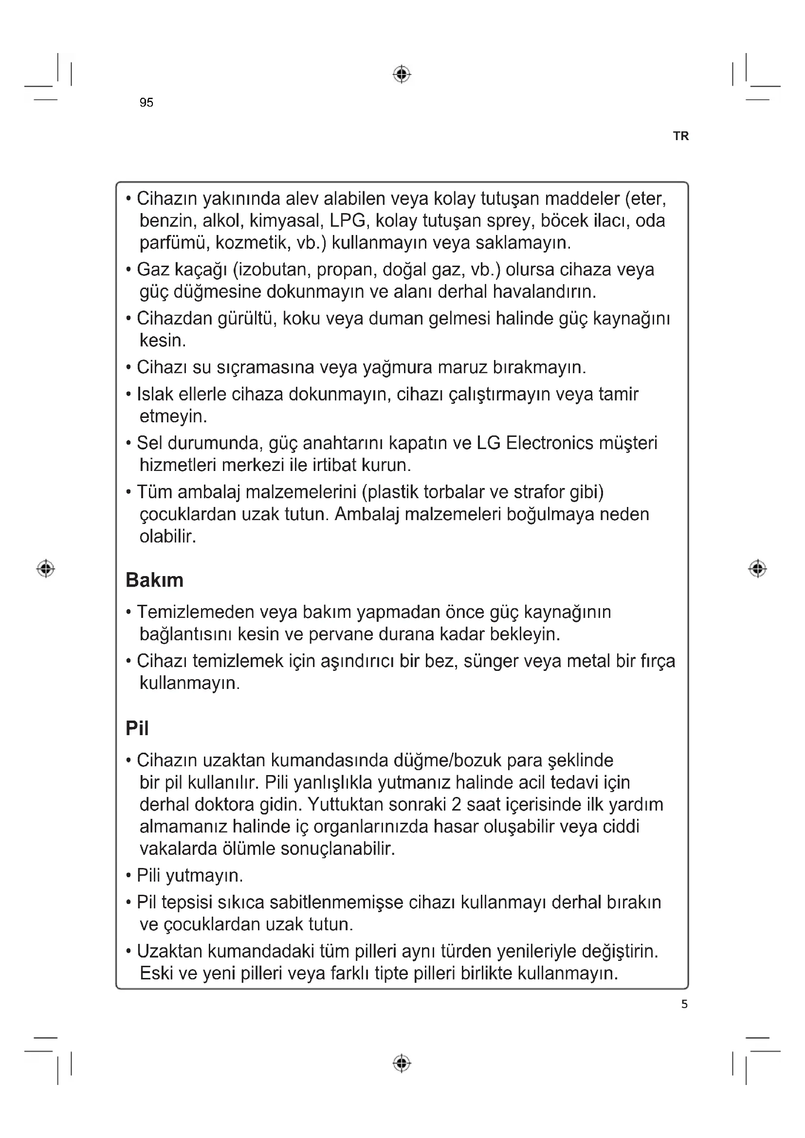 - Cihazın uzaktan kumandasında düğme/bozuk para şeklinde bir pil kullanılır. Pili yanlışlıkla yutmanız halinde acil tedavi için derhal doktora gidin. Yuttuktan sonraki 2 saat içerisinde ilk yardım almamanız halinde iç organlarınızda hasar oluşabilir veya ciddi vakalarda ölümle sonuçlanabilir.
