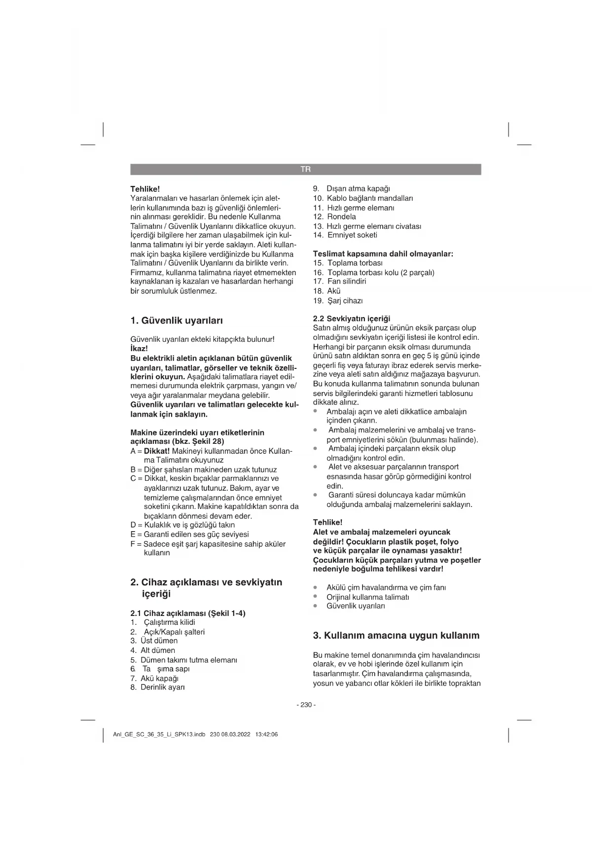 Sadece hasarlı ve arızalı olmayan aletler kullanın. Anl_GE_SC_36_35_Li_SPK13.indb 231 08.03.2022 13:42:06TR