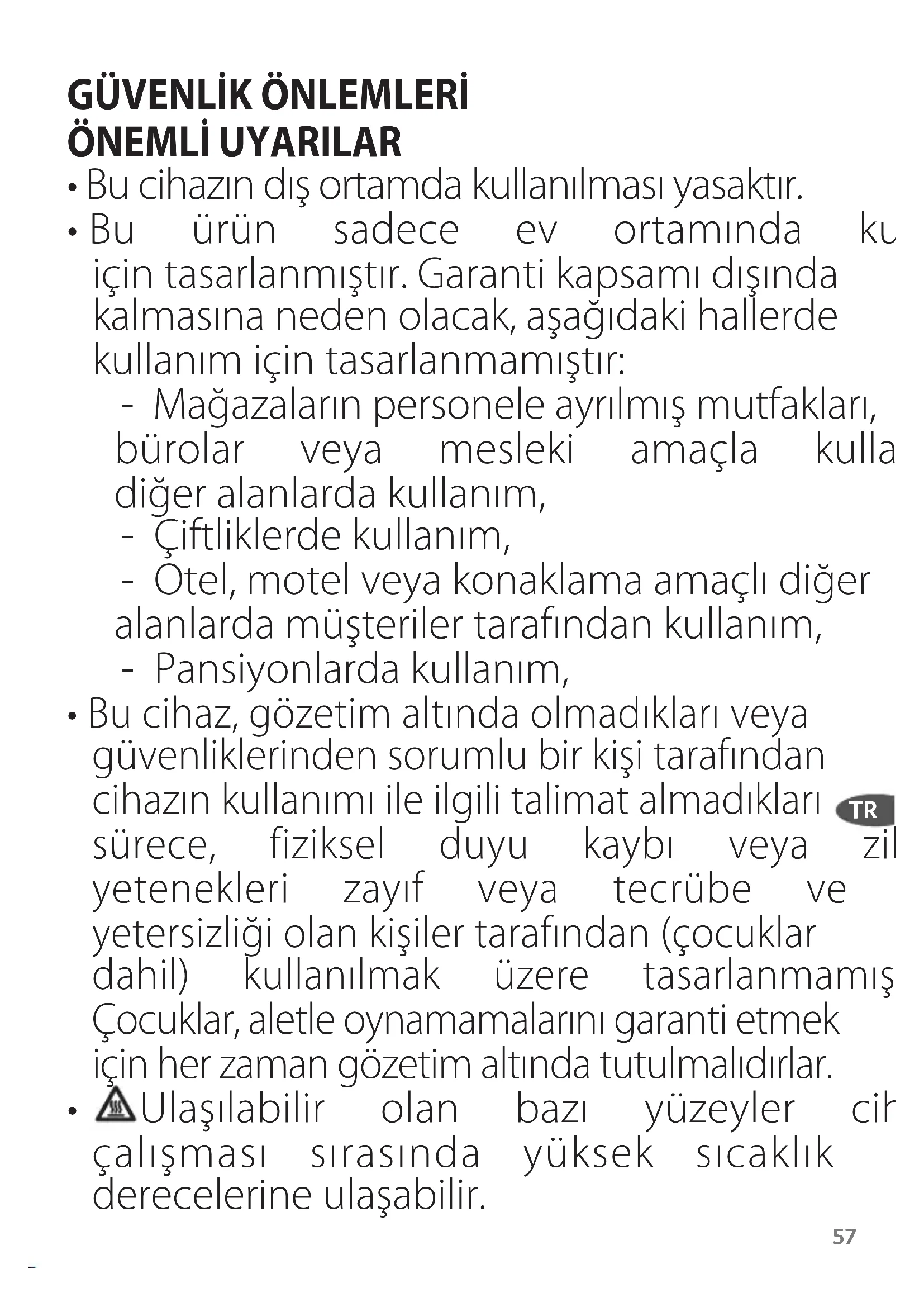 - Ulaşılabilir olan bazı yüzeyler cihazın çalışması sırasında yüksek sıcaklık derecelerineulaşabilir.5858