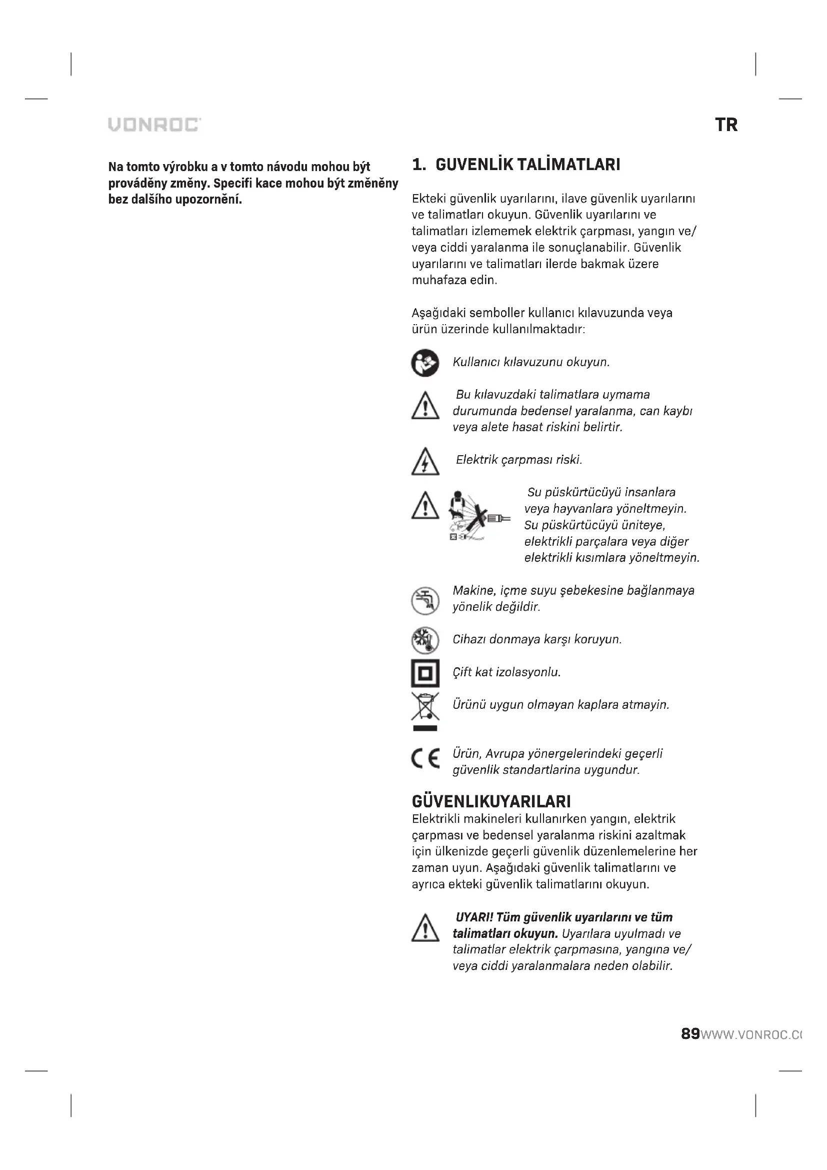 Orijinal talimatların çevirisi 89 DİKKAT: Makineyi kullanmadan önce talimatları okuyun.WWW.VONROC.COM2