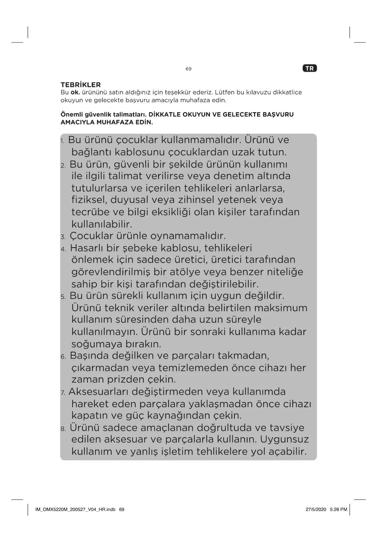 TEBRİKLER Bu ok. ürününü satın aldığınız için teşekkür ederiz. Lütfen bu kılavuzu dikkatlice okuyun ve gelecekte başvuru amacıyla muhafaza edin. Önemli güvenlik talimatları. DİKKATLE OKUYUN VE GELECEKTE BAŞVURU AMACIYLA MUHAFAZA EDİN.