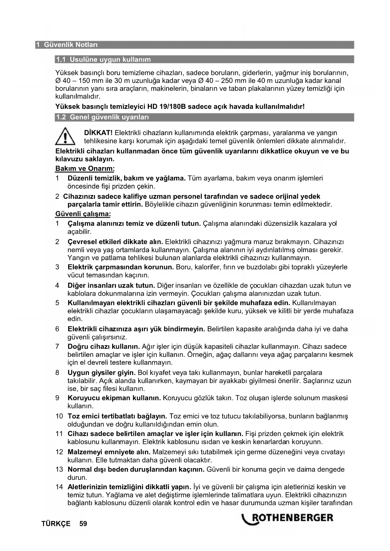 HD 13100 - Yüksek basınçlı yıkayıcı ROTHENBERGER - Ücretsiz kullanım kılavuzu