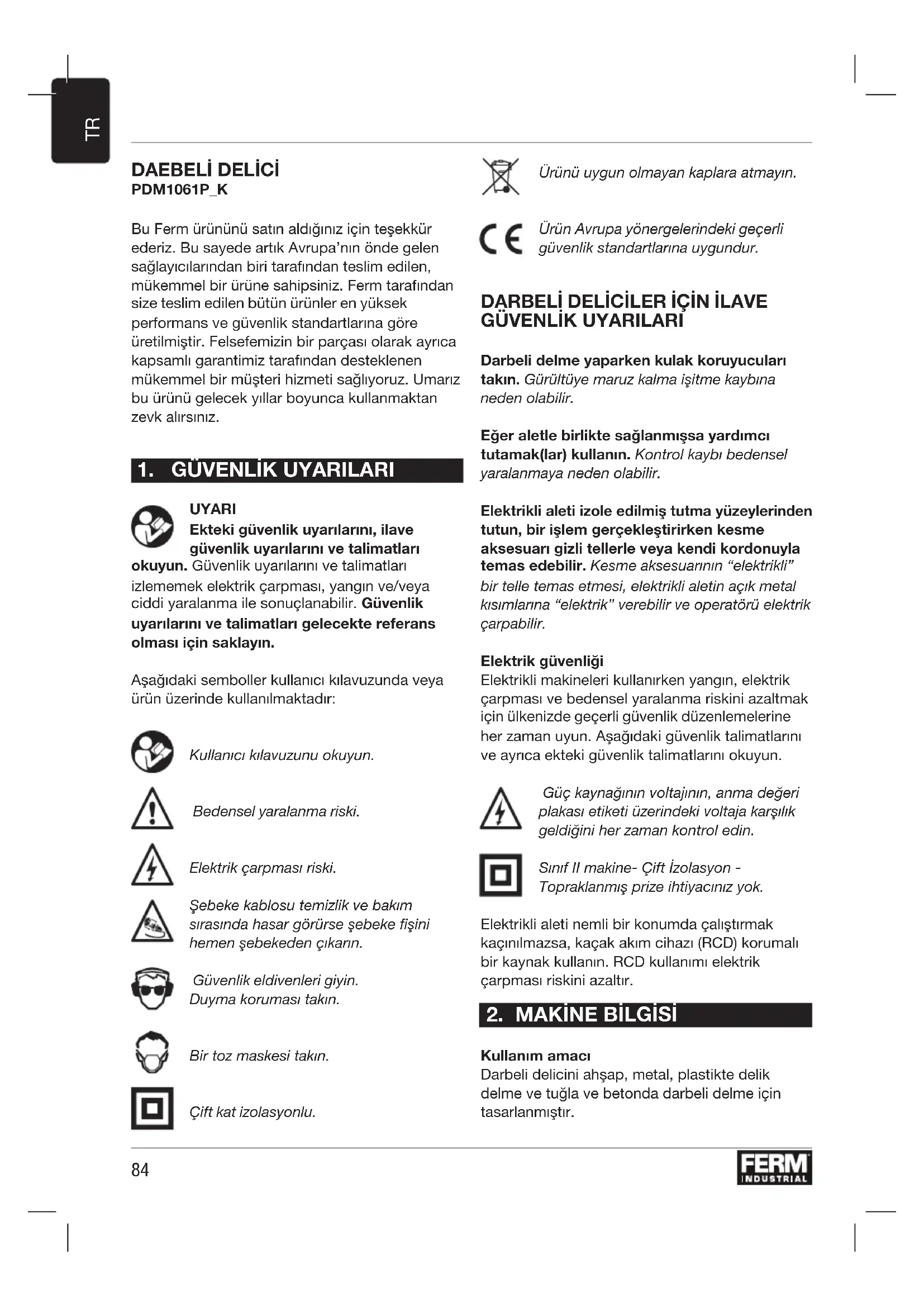 KULLANIM KILAVUZU PDM1061P_K Ferm