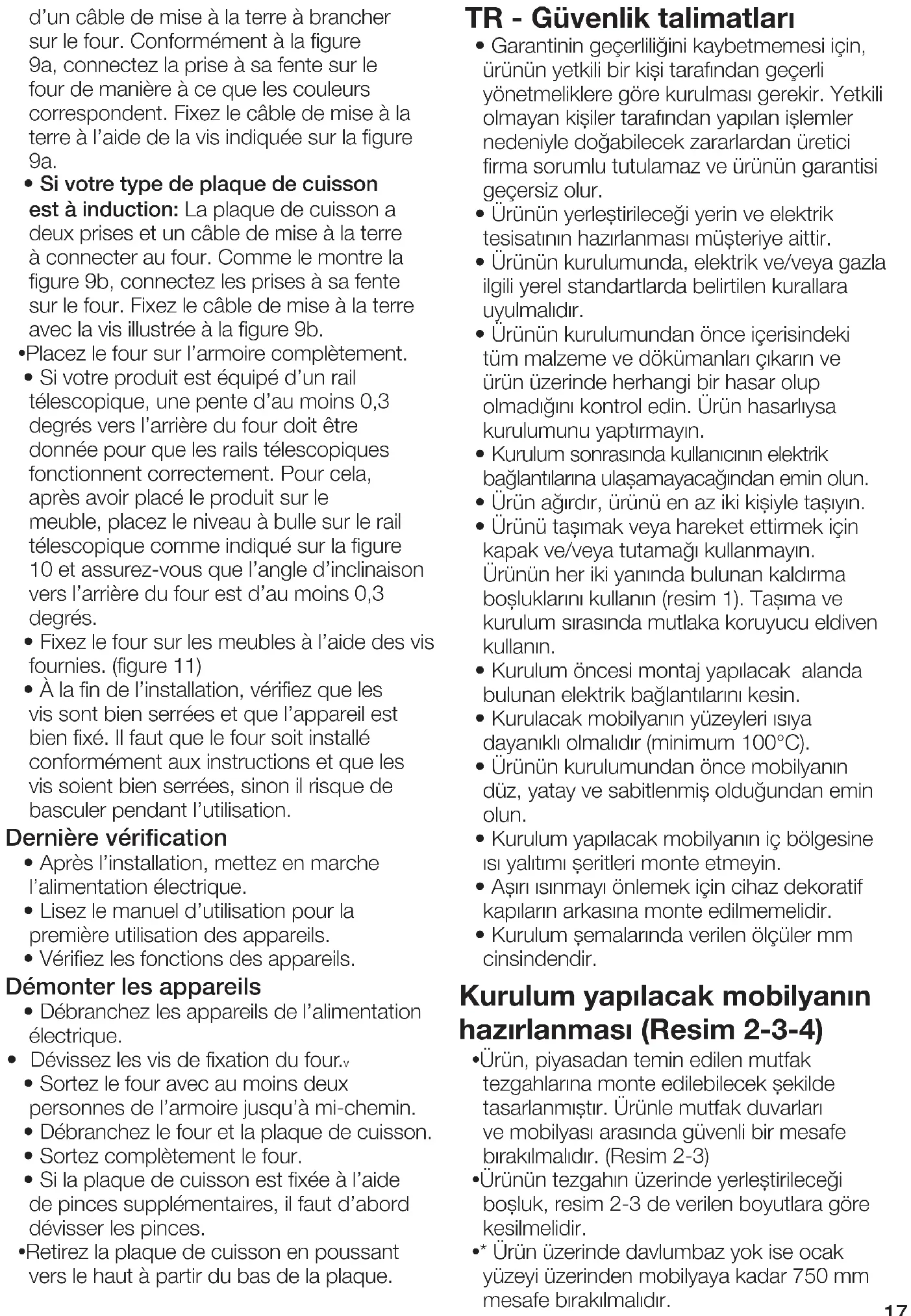 - Ürün, piyasadan temin edilen mutfak tezgahlarına monte edilebilecek şekilde tasarlanmıştır. Ürünle mutfak duvarları ve mobilyası arasında güvenli bir mesafe bırakılmalıdır. (Resim 2-3)