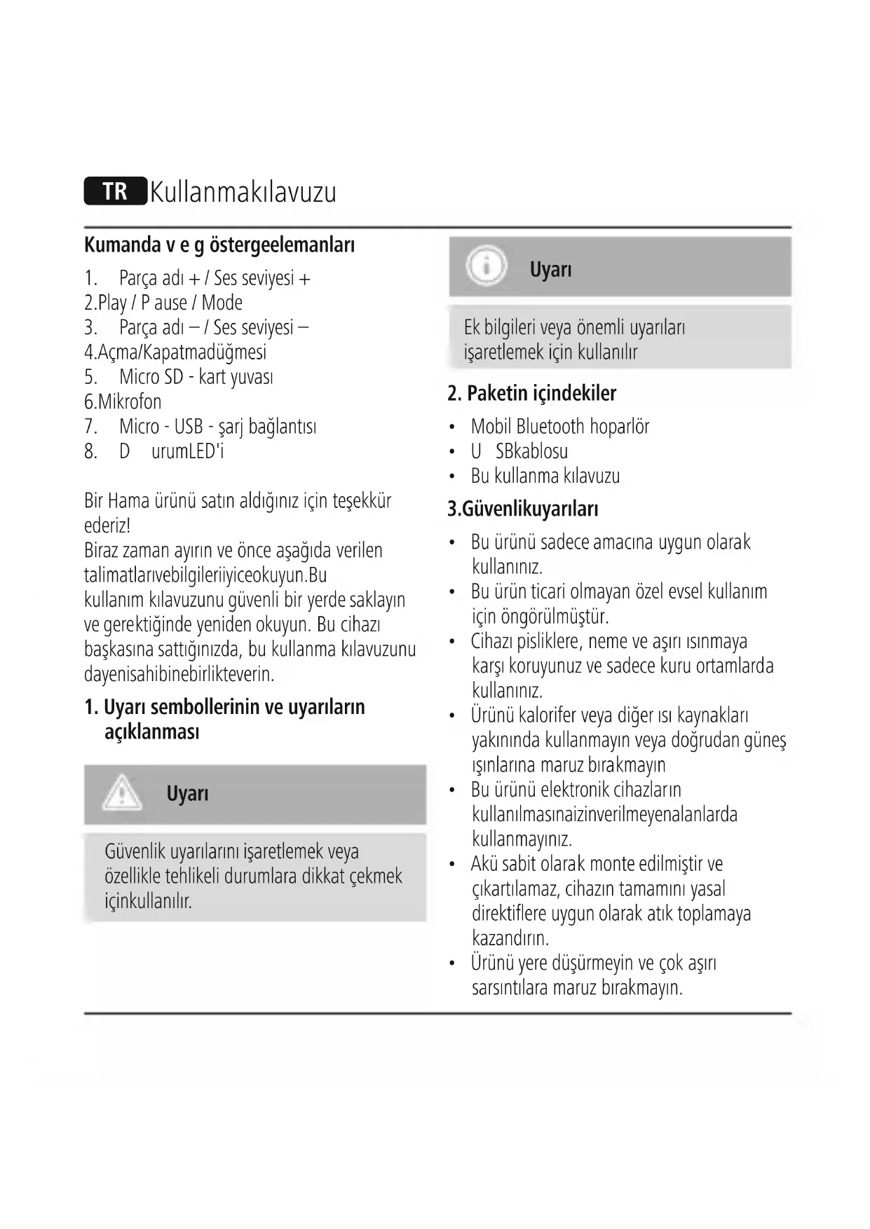 8.Durum LED'i BirHamaürünü satınaldığınıziçin teşekkür ederiz! Birazzamanayırınveönce aşağıda verilen talimatları ve bilgileri iyice okuyun. Bu kullanımkılavuzunu güvenli bir yerde saklayın ve gerektiğinde yeniden okuyun. Bu cihazı başkasına sattığınızda, bu kullanmakılavuzunu da yeni sahibine birlikte verin.