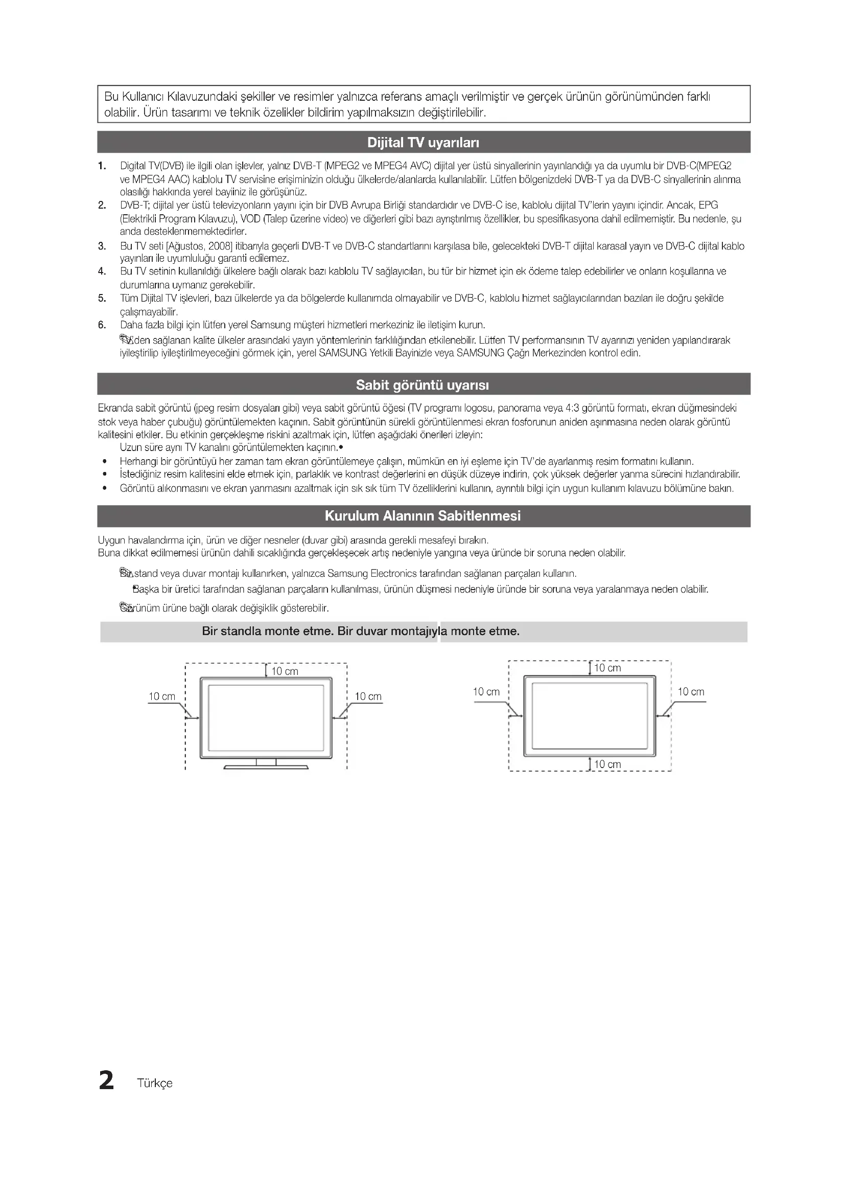 Bir standla monte etme. Bir duvar montajıyla monte etme. 10 cm 10 cm 10 cm 10 cm 10 cm 10 cm 10 cm BN68-02808A-Tur.indb 2 2010-03-27 9:06:143 Türkçe İçindekiler Başlarken