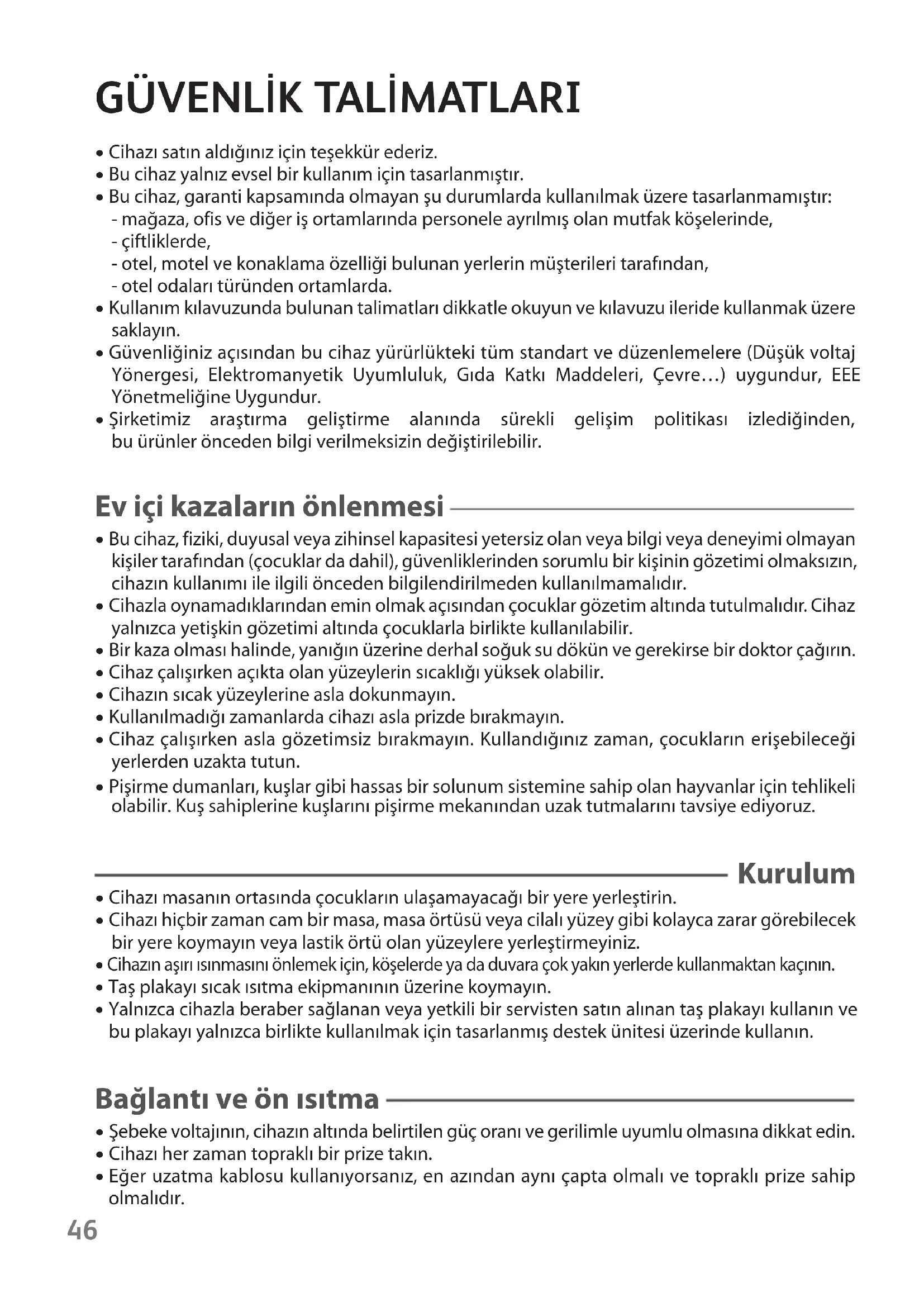 - Bu cihaz yalnız evsel bir kullanım için tasarlanmıştır.