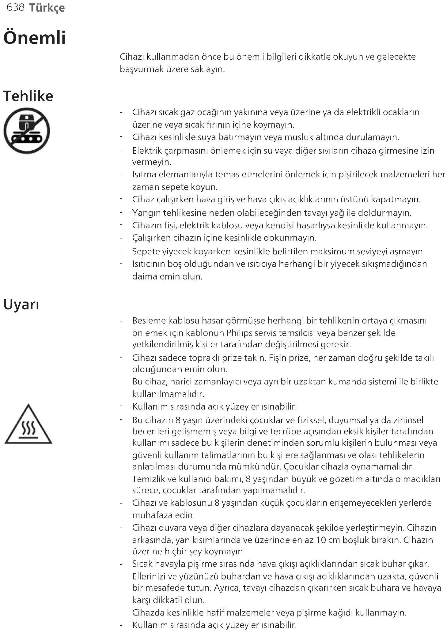 Kullanım sırasında açık yüzeyler ısınabilir.639 Türkçe