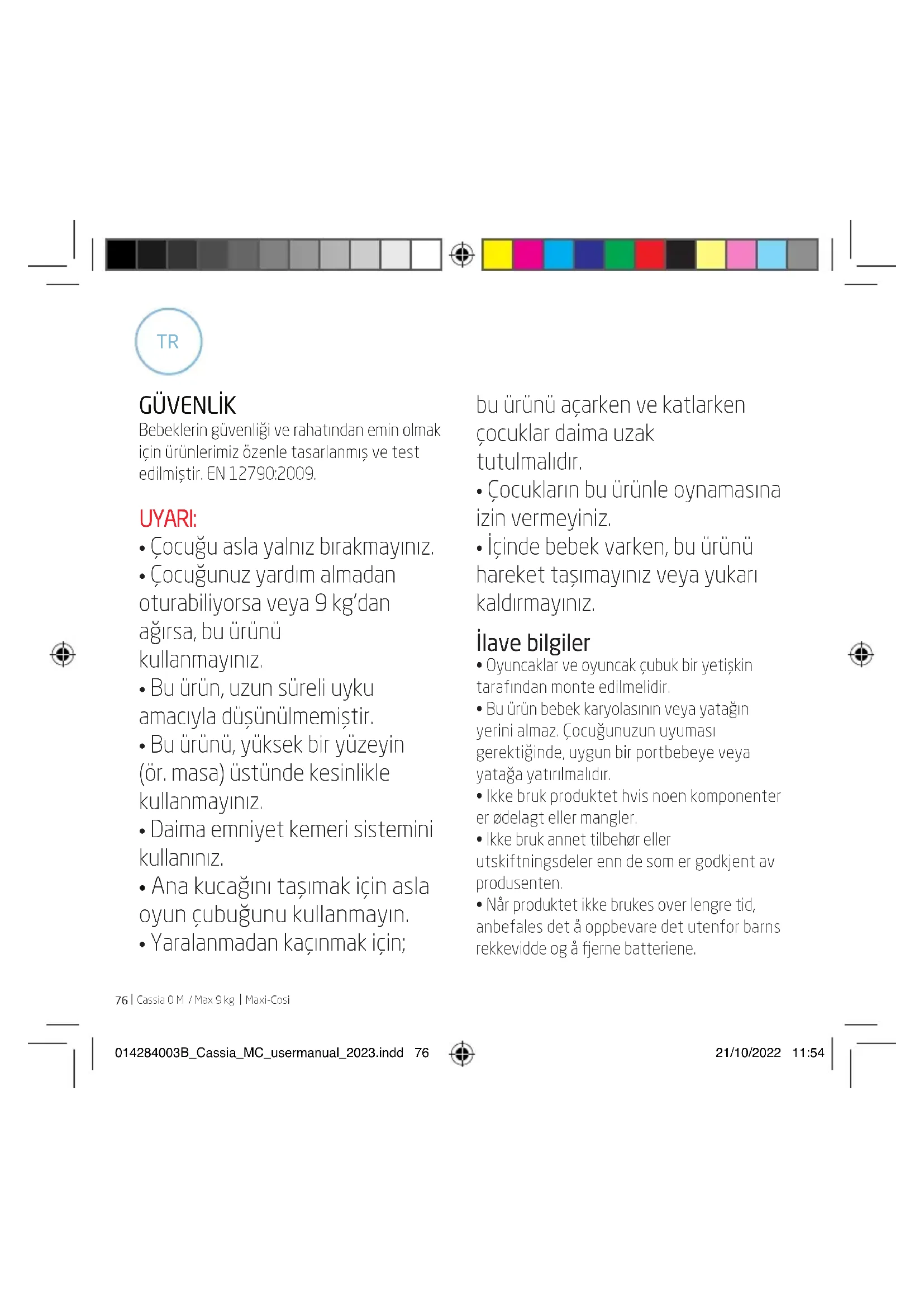Bebeklerin güvenliği ve rahatından emin olmak için ürünlerimiz özenle tasarlanmış ve test edilmiştir. EN 12790:2009. UYARI: