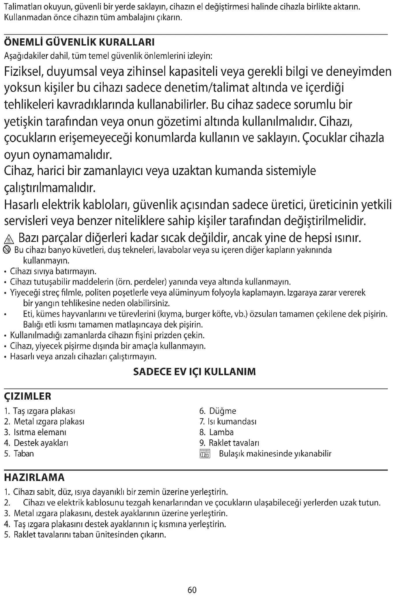 ` Bulaşık makinesinde yıkanabilir HAZIRLAMA