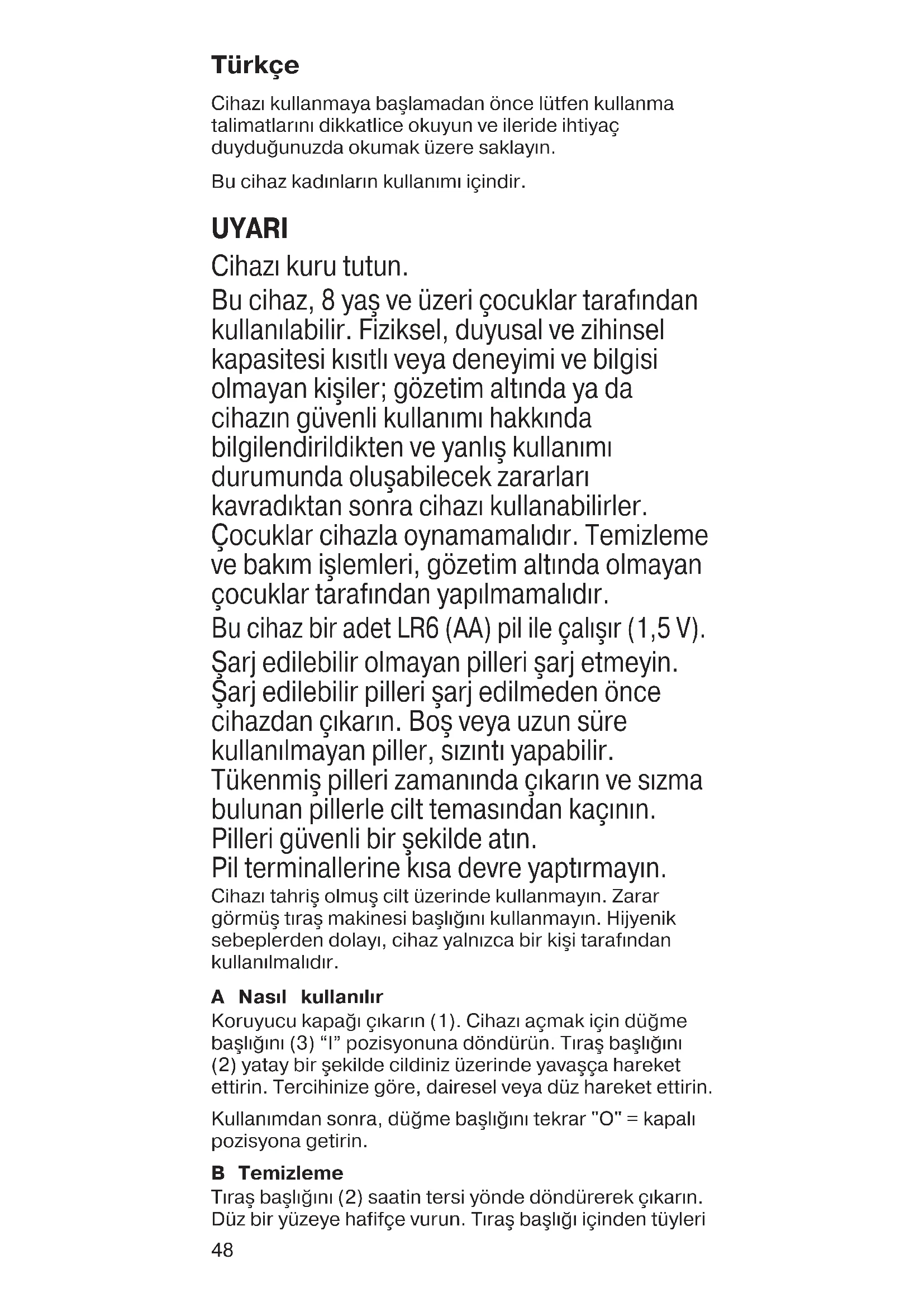 şekilde kullanılması gerekmektedir. BRAUN ürünlerine Procter & Gamble Tüketim Malları Sanayi A.Ş.‘nin yetkili kıldığı servis elemanları dışındaki şahıslar tarafından bakım onarım veya başka bir nedenle müdahale edilmemelidir.