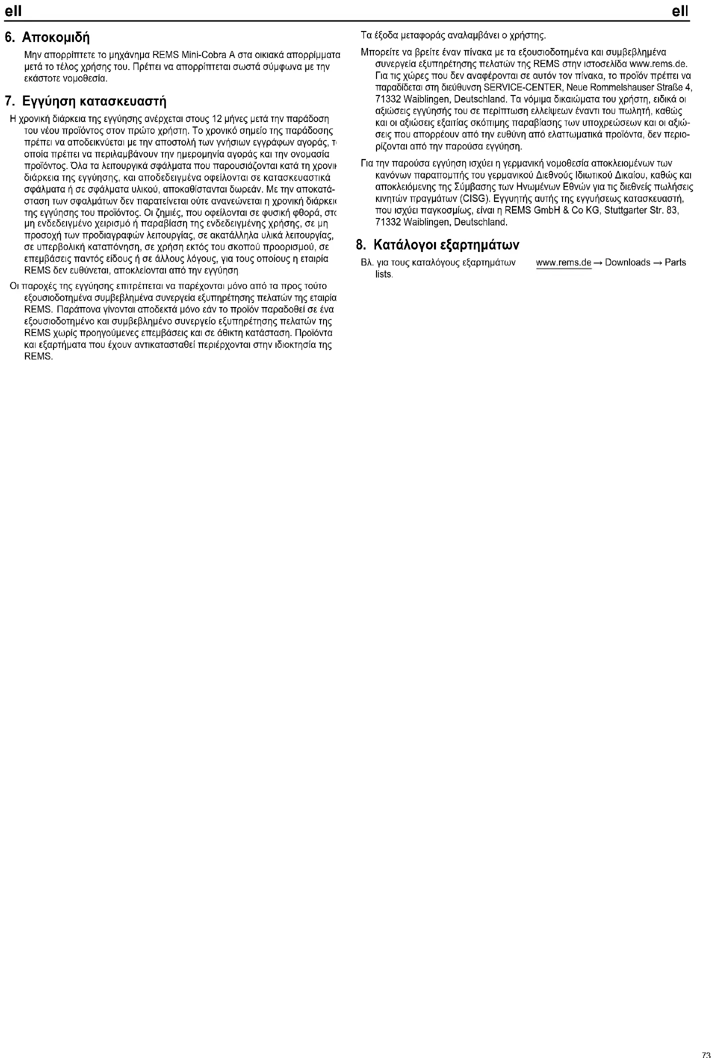 Parça listeleri için bkz. www.rems.de