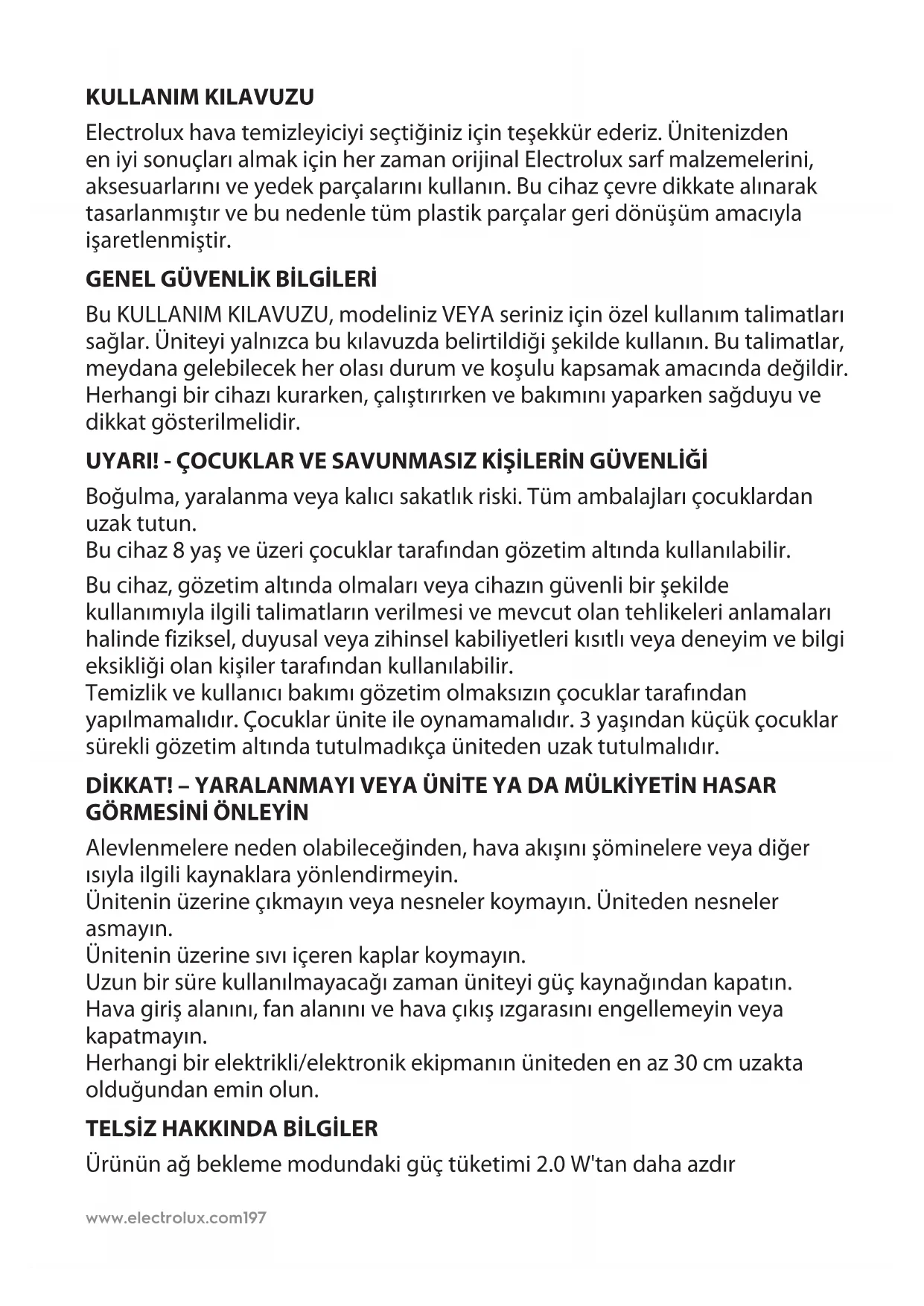 36. En iyi deneyim ve hava temizleyicinin kesintisiz kullanımını sağlamak için lütfen Electrolux