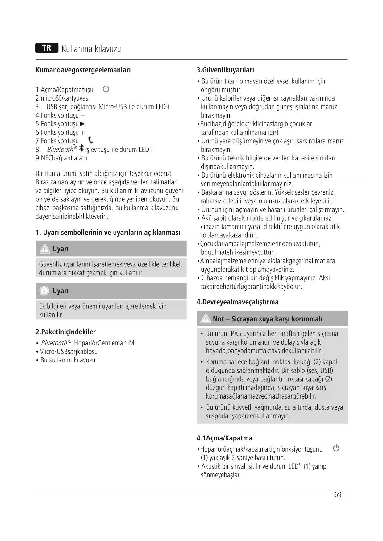 Bir Hama ürünü satınaldığınıziçin teşekkür ederiz! Biraz zaman ayırınveönce aşağıda verilen talimatları ve bilgileri iyice okuyun. Bu kullanımkılavuzunu güvenli bir yerde saklayınvegerektiğinde yeniden okuyun. Bu cihazı başkasına sattığınızda, bu kullanma kılavuzunu da yeni sahibine birlikte verin.