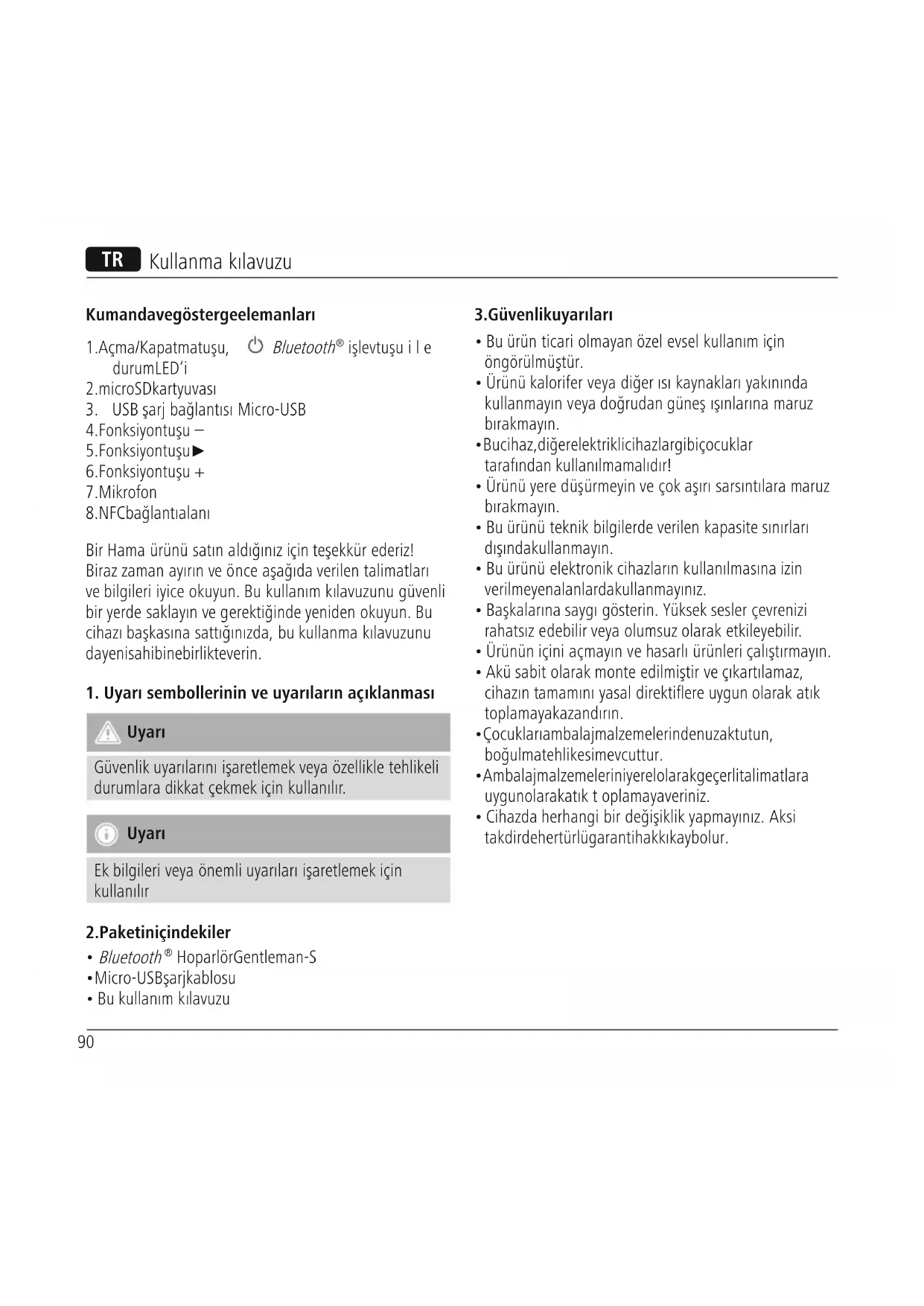 Bir Hama ürünü satınaldığınıziçin teşekkür ederiz! Biraz zaman ayırınveönce aşağıda verilen talimatları ve bilgileri iyice okuyun. Bu kullanımkılavuzunu güvenli bir yerde saklayınvegerektiğinde yeniden okuyun. Bu cihazı başkasına sattığınızda, bu kullanma kılavuzunu da yeni sahibine birlikte verin.