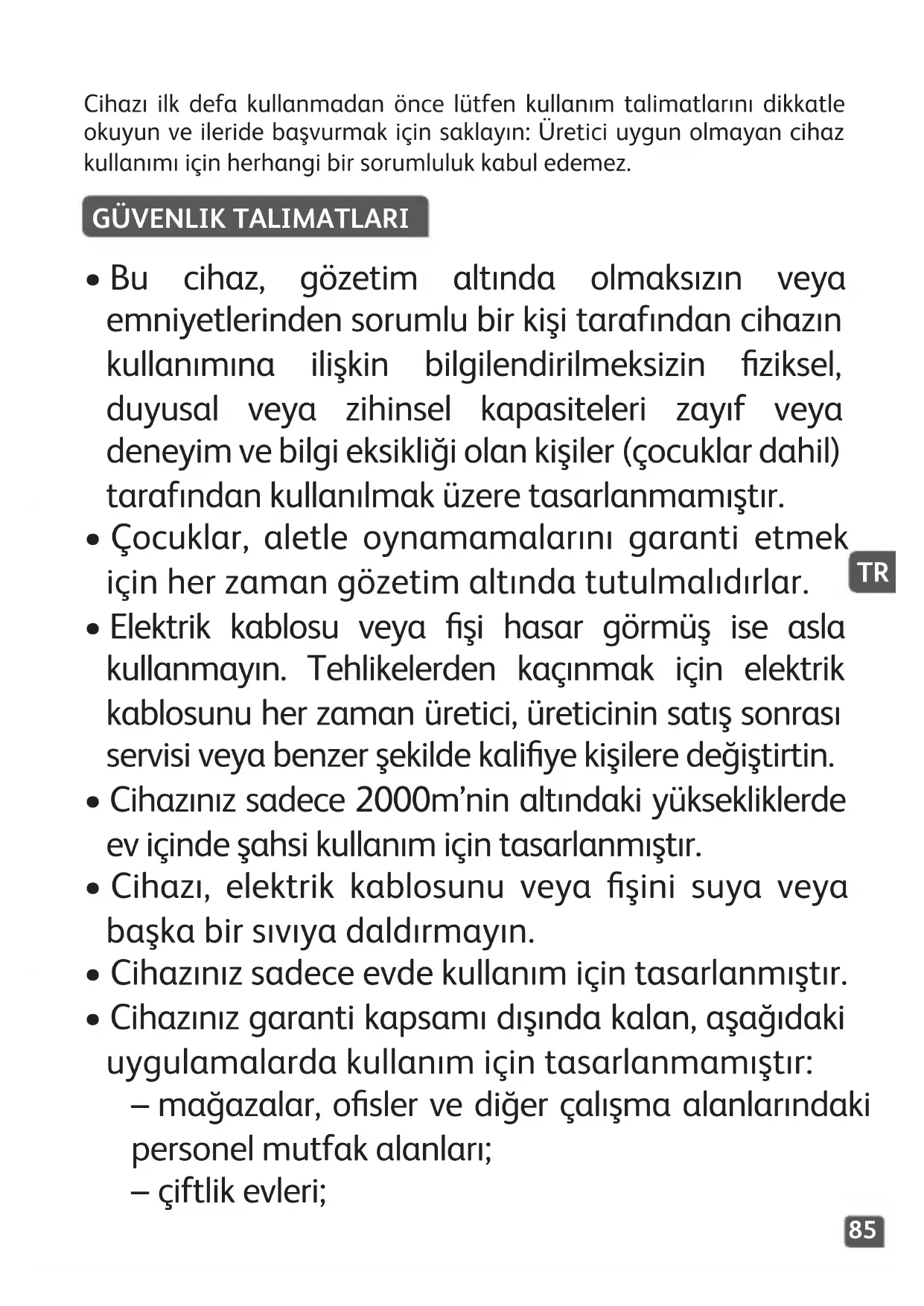 - Cihazınız sadece evde kullanım için tasarlanmıştır.