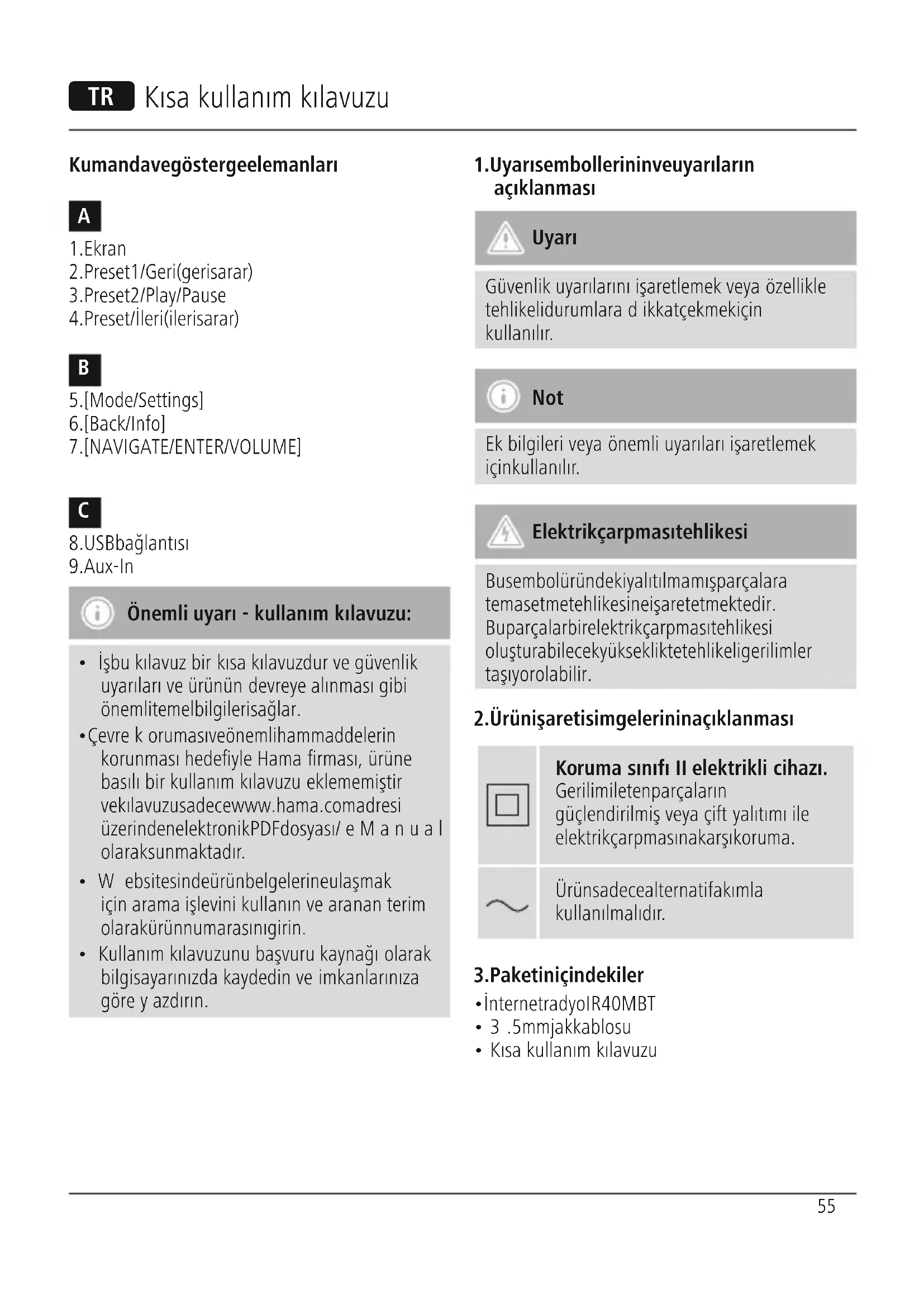 Cihazın kılavuzunu ücretsiz bulun IR40MBT HAMA PDF formatında.