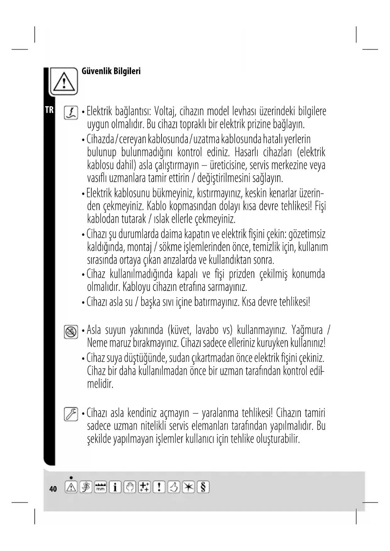 - Cihazı asla kendiniz açmayın – yaralanma tehlikesi! Cihazın tamiri sadece uzman nitelikli servis elemanları tarafından yapılmalıdır. Bu şekilde yapılmayan işlemler kullanıcı için tehlike oluşturabilir.41 Güvenlik Bilgileri