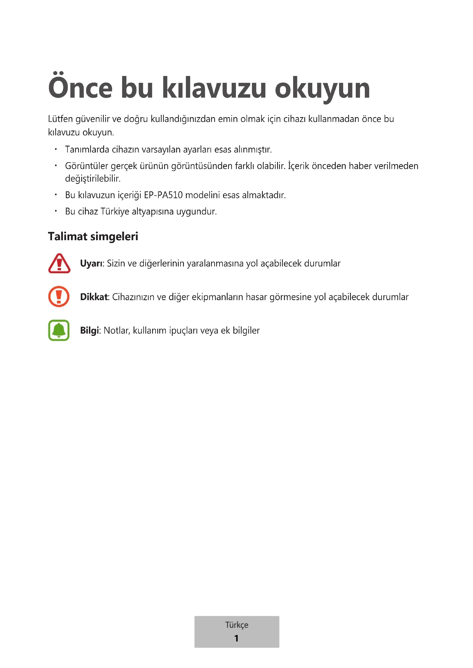 Bu kılavuzun içeriği EP-PA510 modelini esas almaktadır.