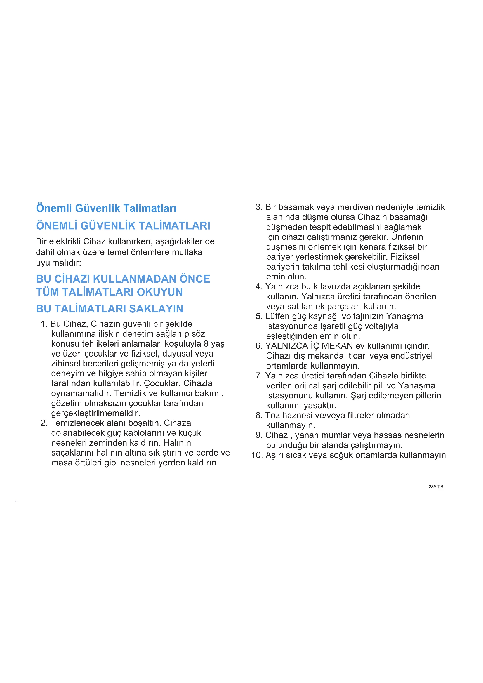 10. Aşırı sıcak veya soğuk ortamlarda kullanmayın286TR