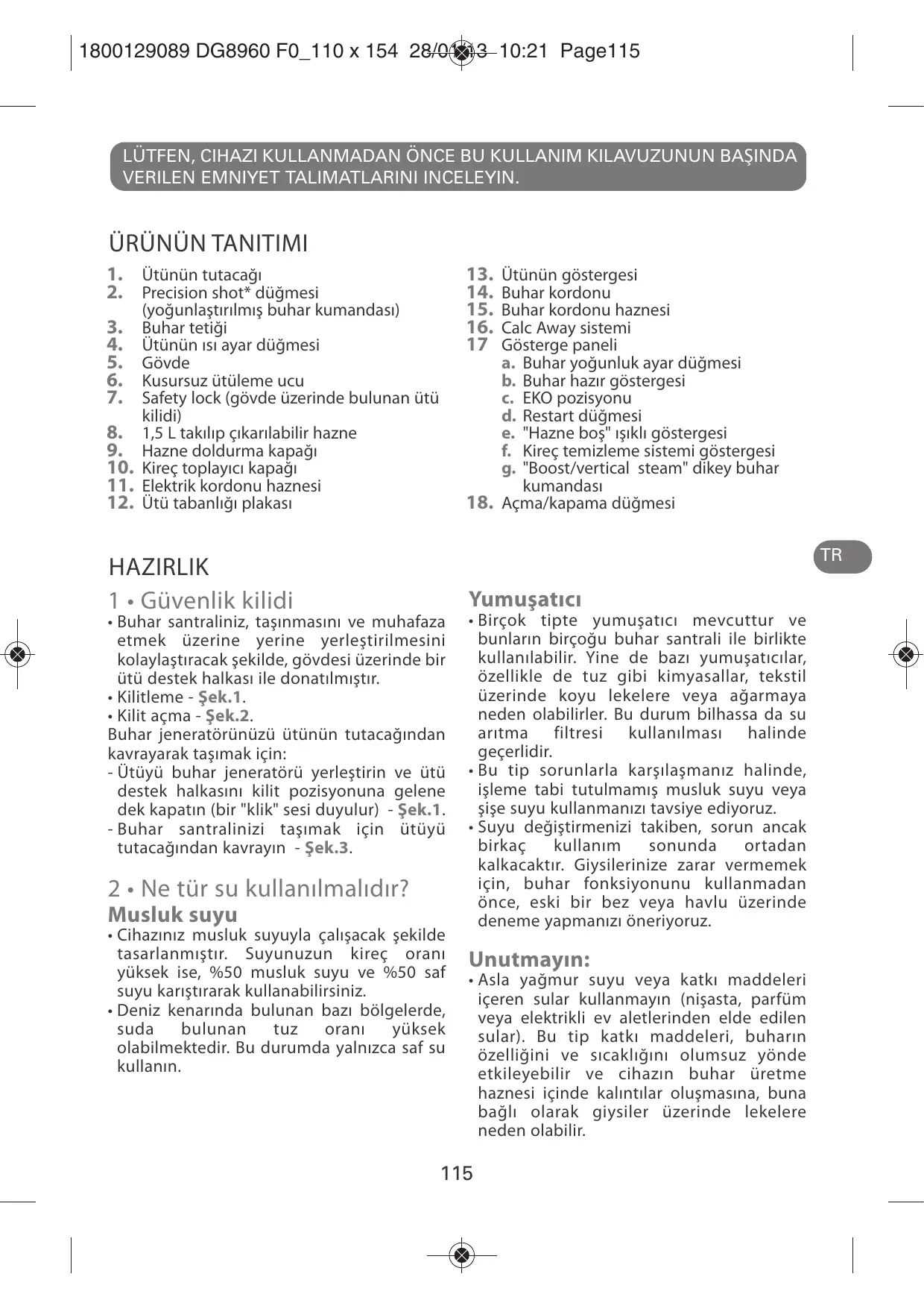 1800129089 DG8960 F0_110 x 154 28/01/13 10:21 Page116 3 • Buhar jeneratörünüzün hazırlanması 6 • Buharlı ütüleme