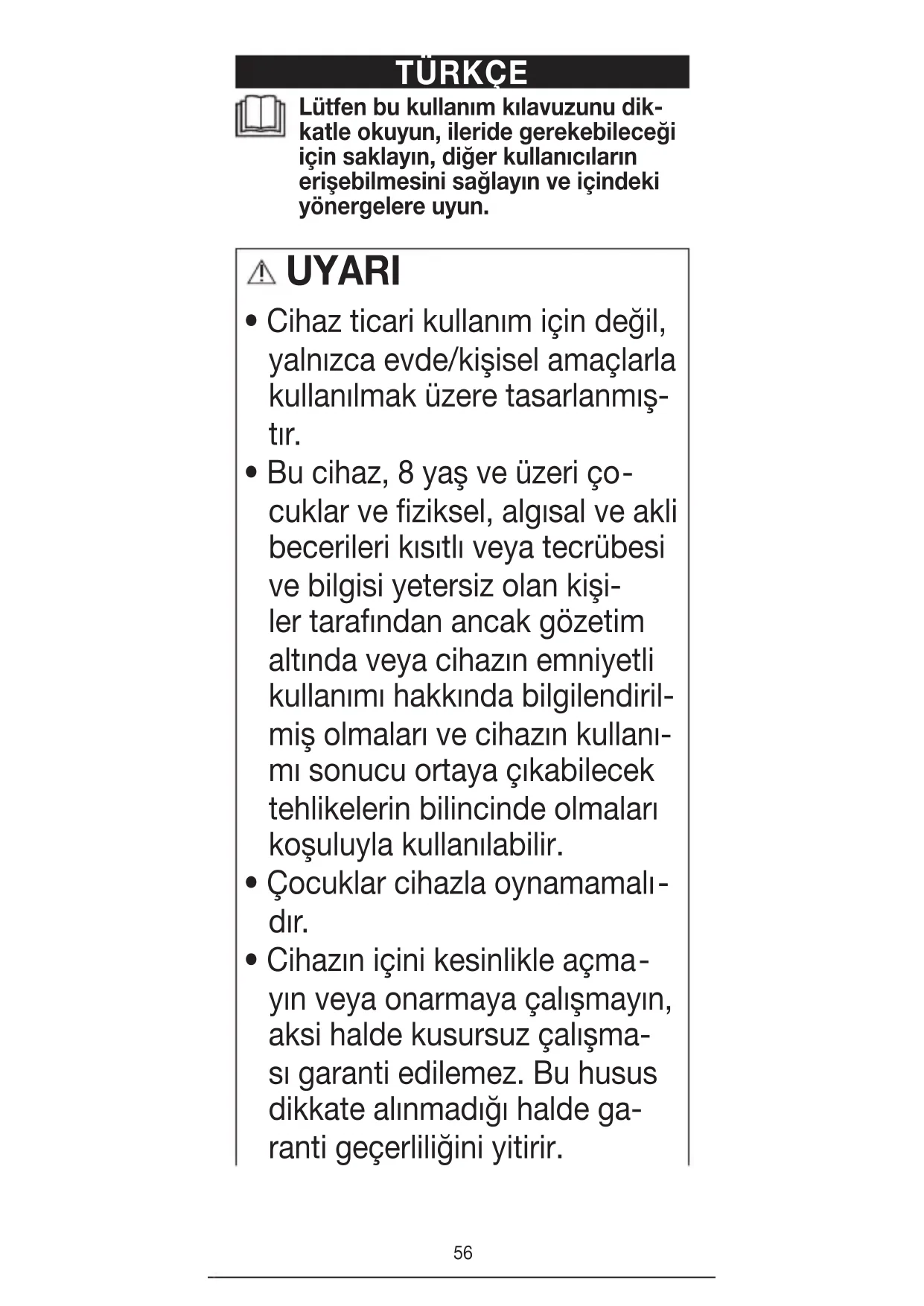 - Cihaz ticari kullanım için değil, yalnızca evde/kişisel amaçlarla kullanılmak üzere tasarlanmış- tır.