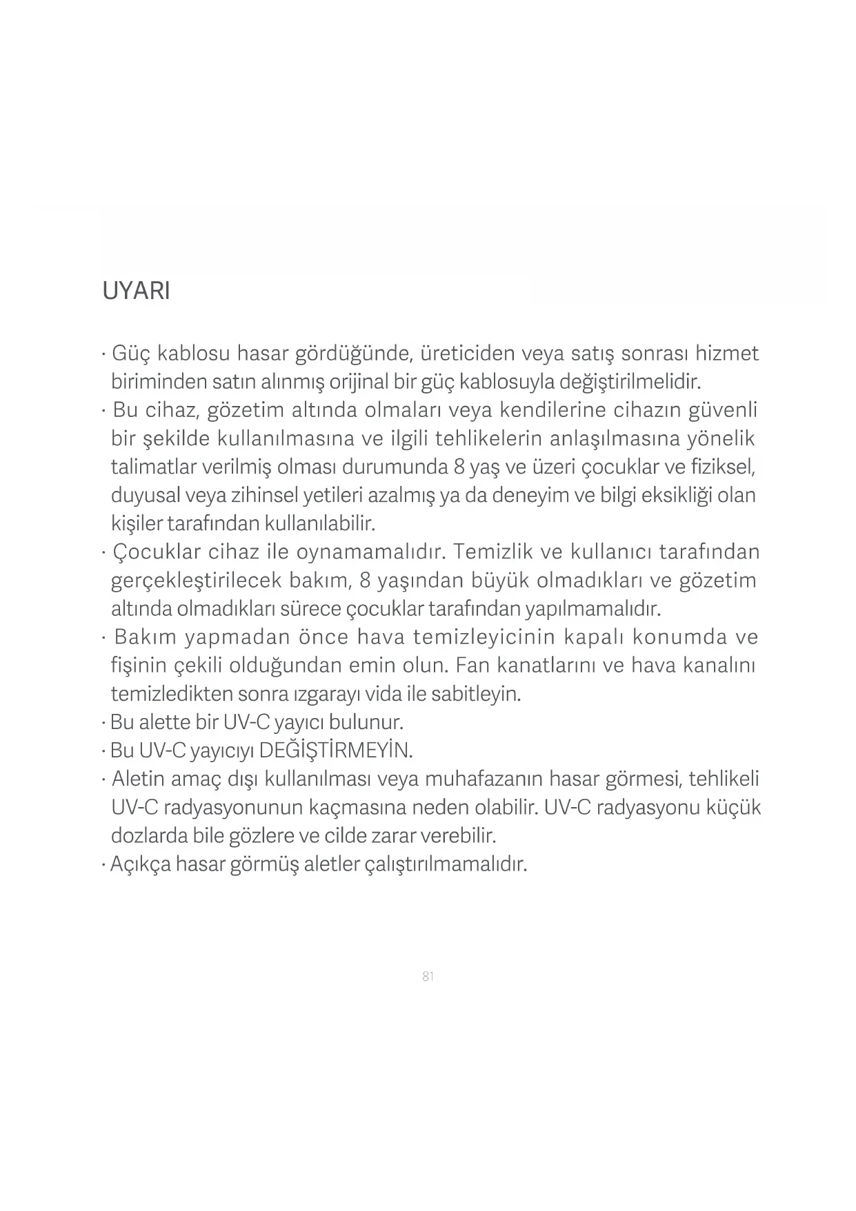 - Bu UV-C yayıcıyı DEĞİŞTİRMEYİN.