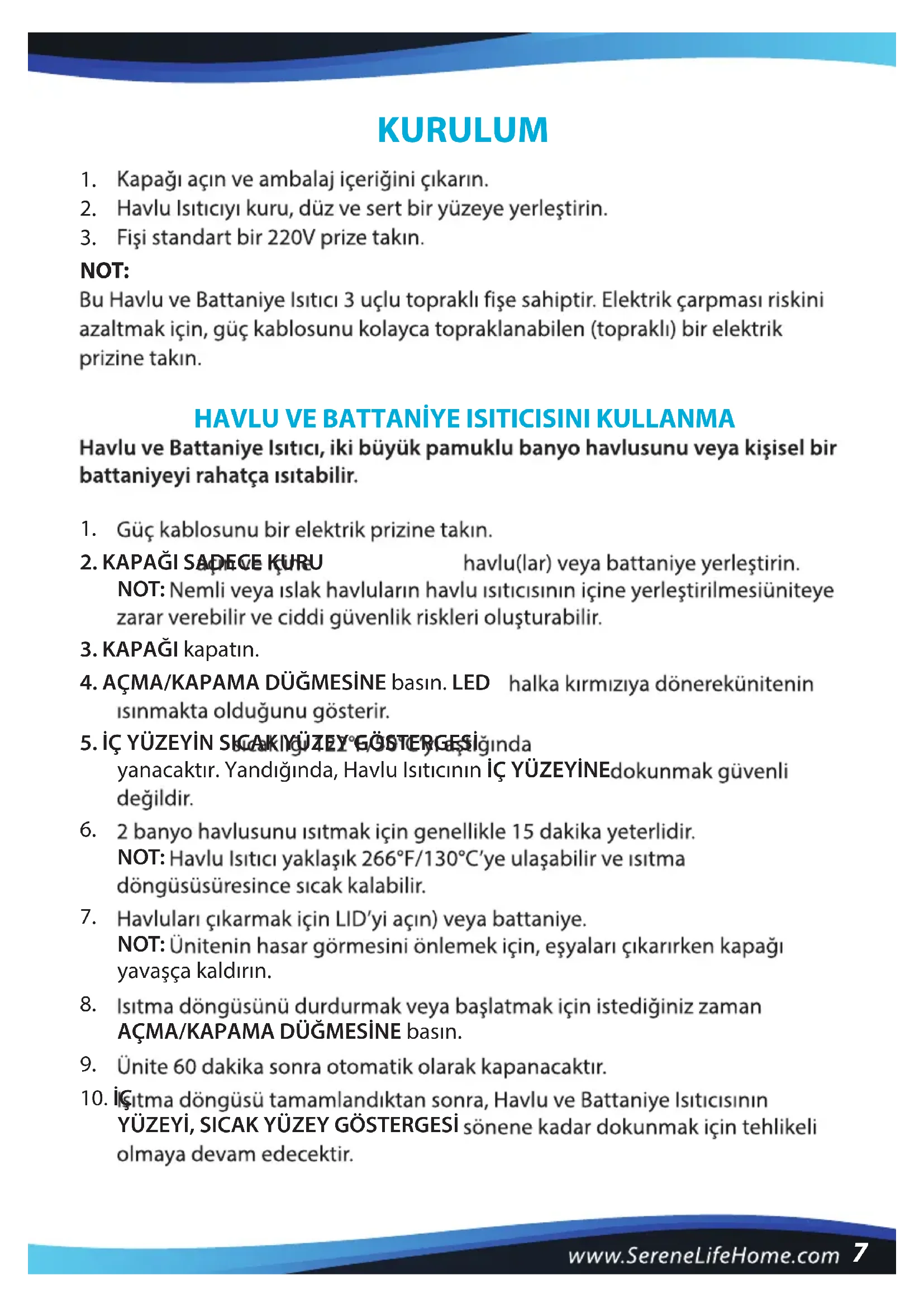 SLTLW100 - Elektrikli havlu ısıtıcısı SereneLife - Ücretsiz kullanım kılavuzu