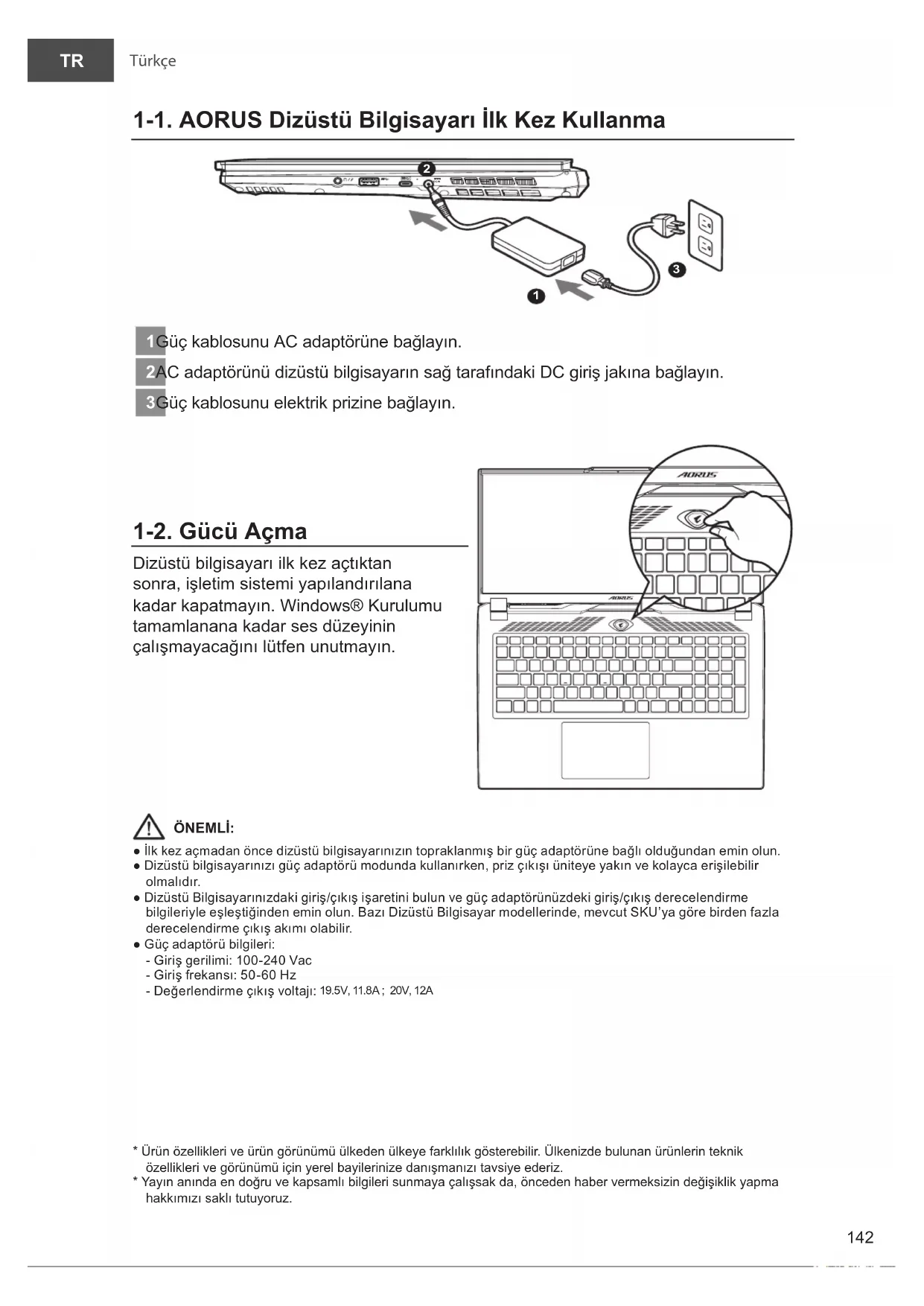 1-1. AORUS Dizüstü Bilgisayarı İlk Kez Kullanma DCIN