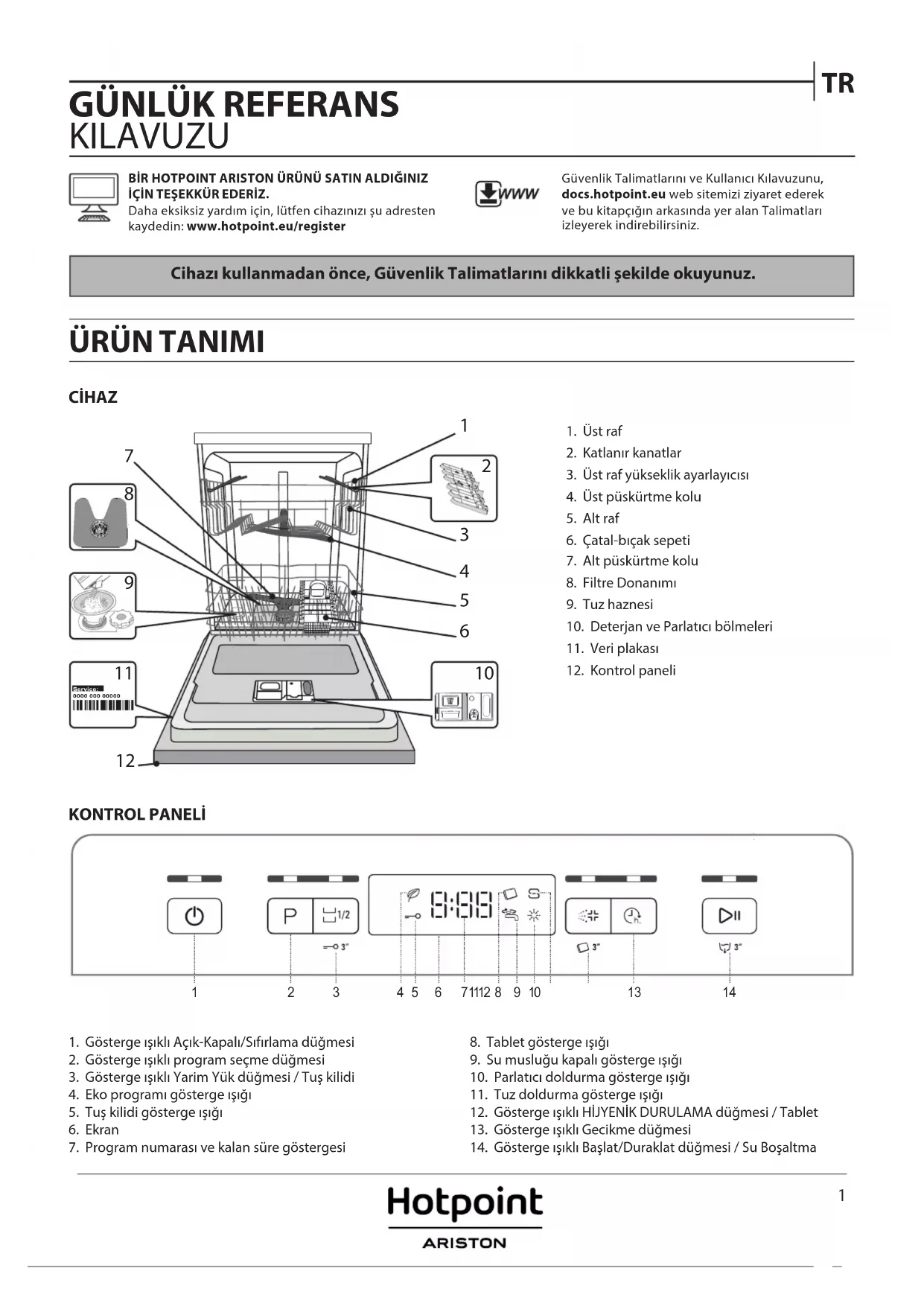 KILAVUZU KONTROL PANELİ BİR HOTPOINT ARISTON ÜRÜNÜ SATIN ALDIĞINIZ İÇİN TEŞEKKÜR EDERİZ. Daha eksksz yardım çn, lütfen chazınızı şu adresten kaydedn: www.hotpoint.eu/registerGüvenlk Talmatlarını ve Kullanıcı Kılavuzunu, docs.hotpoint.eu web stemz zyaret ederek ve bu ktapçığın arkasında yer alan Talmatları zleyerek ndreblrsnz.