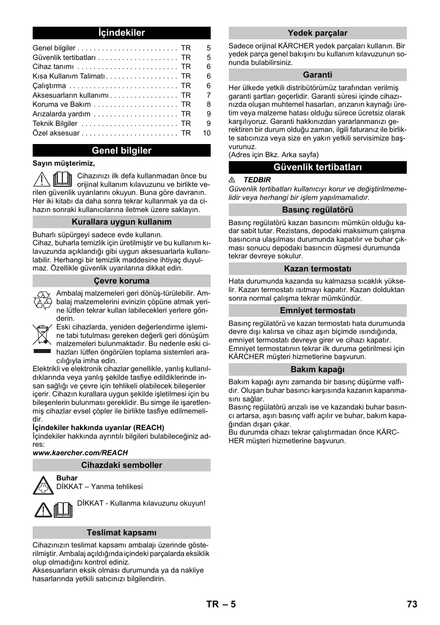 Téléchargez la notice de votre Buhar temizleyici au format PDF gratuitement ! Retrouvez votre notice SC4 - KARCHER et reprennez votre appareil électronique en main. Sur cette page sont publiés tous les documents nécessaires à l'utilisation de votre appareil SC4 de la marque KARCHER.
