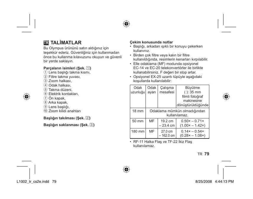 ZUIKO DIGITAL ED 18-180MM F3.5-6.3 - Fotoğraf objektifi OLYMPUS - Notice d'utilisation et mode d'emploi gratuit