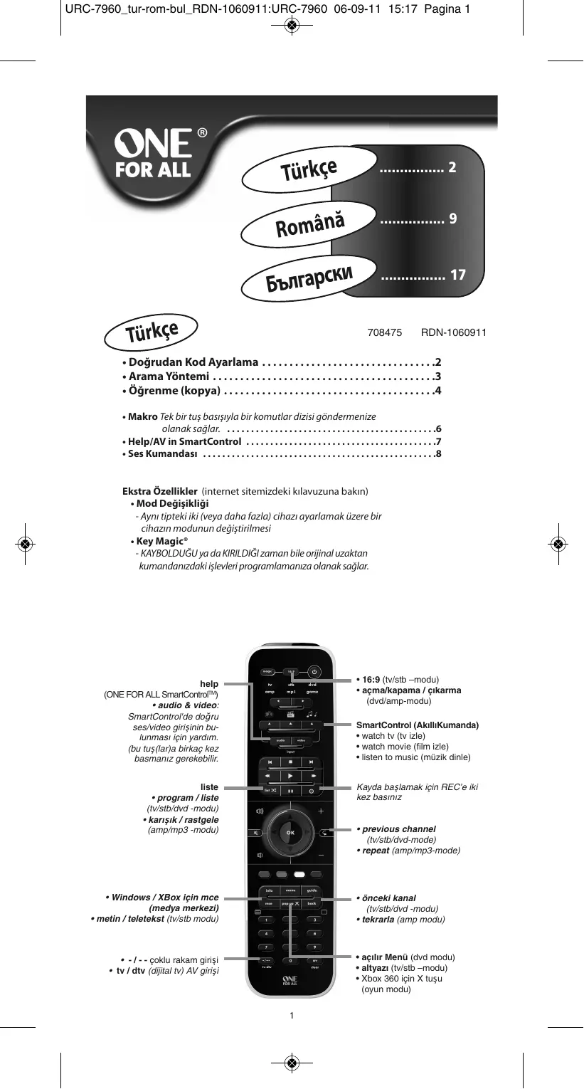 Téléchargez la notice de votre Evrensel kumanda au format PDF gratuitement ! Retrouvez votre notice URC 7962 - ONE FOR ALL et reprennez votre appareil électronique en main. Sur cette page sont publiés tous les documents nécessaires à l'utilisation de votre appareil URC 7962 de la marque ONE FOR ALL.