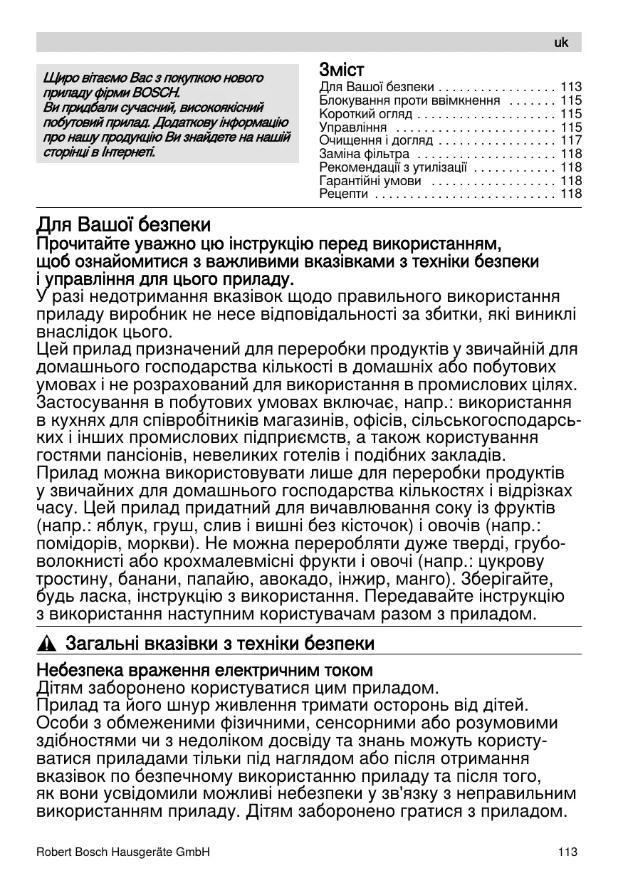ПОСІБНИК КОРИСТУВАЧА MES4000 VITAJUICE BOSCH