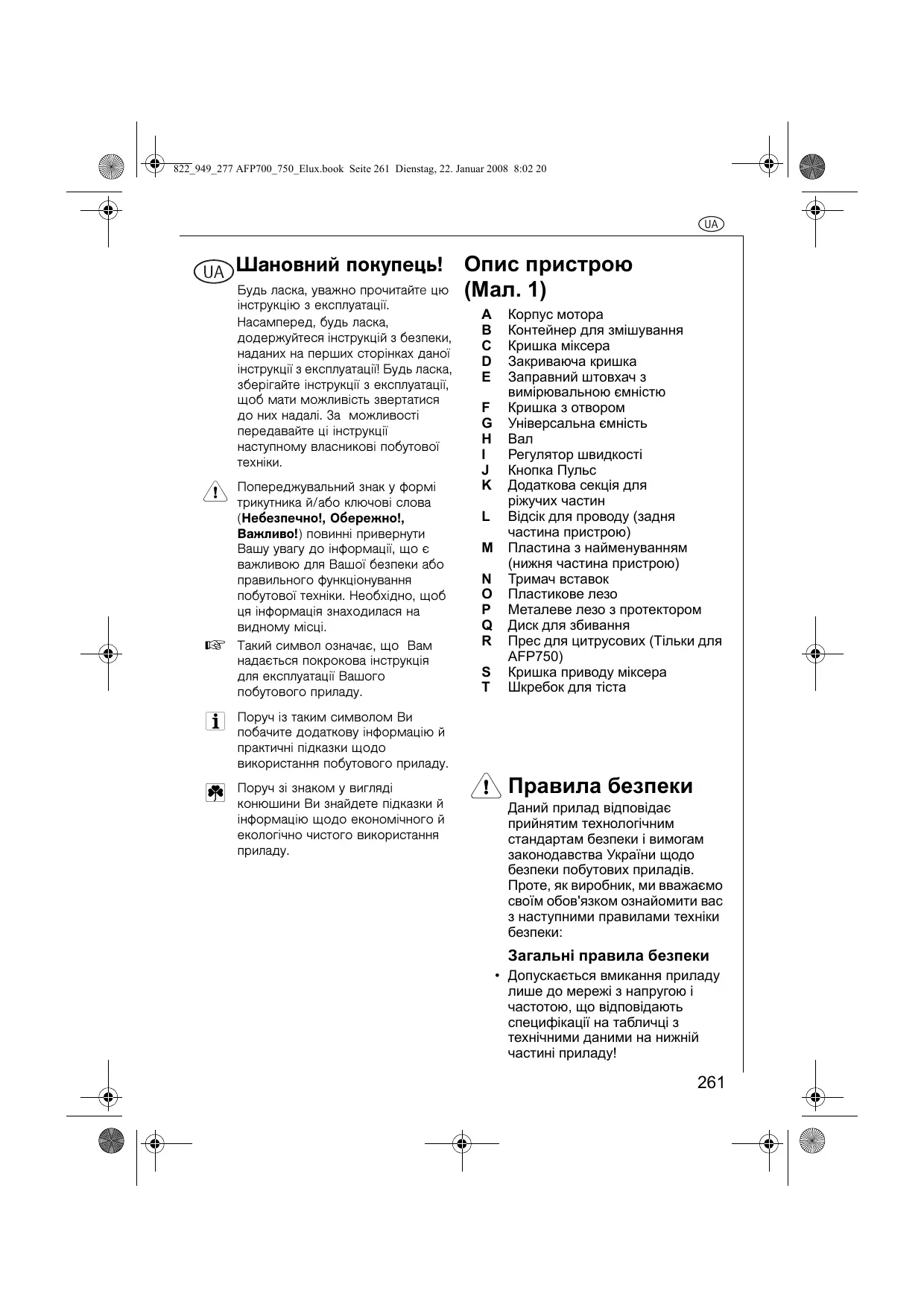 ПОСІБНИК КОРИСТУВАЧА AFP700 AEG-ELECTROLUX