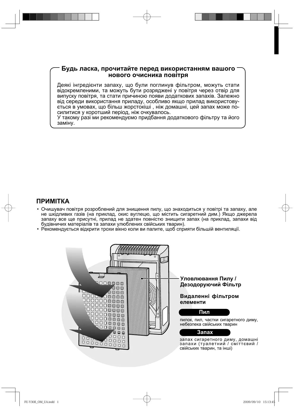 FU-Y30EU - Очищувач повітря SHARP - Безкоштовний посібник користувача