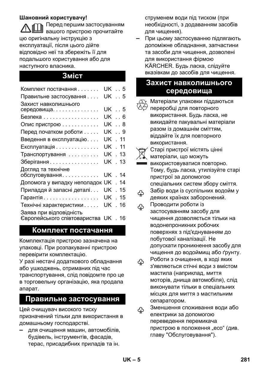 ПОСІБНИК КОРИСТУВАЧА K7 ECO!OGIC CAR & HOME KARCHER