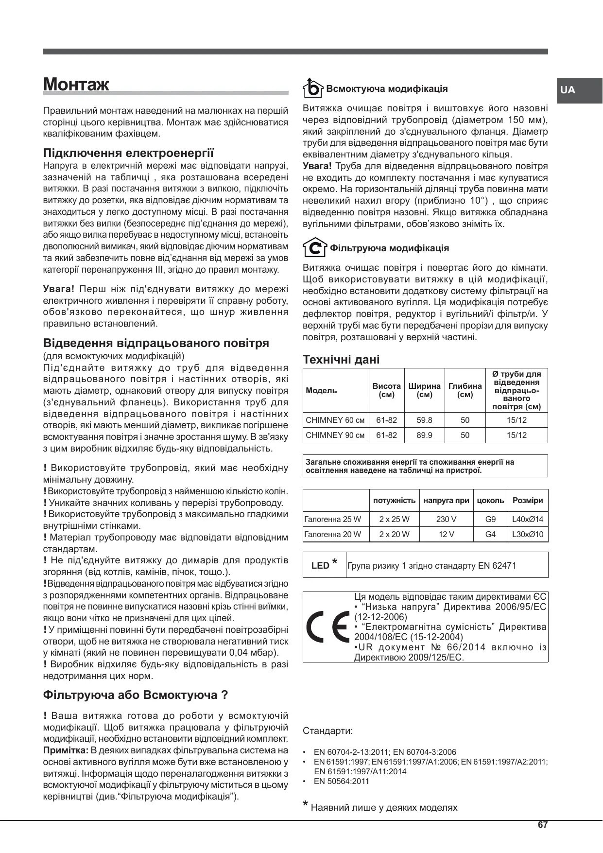 - UR док умент № 66/2014 вк лючно із Директивою 2009/125/EC. Фільтруюча або Всмоктуюча ? ! Ваша витяжка готова до роботи у всмоктуючій модифікації. Щоб витяжка працювала у фільтруючій модифікації, необхідно встановити відповідний комплект. Примітка: В деяких випадках фільтрувальна система на основі активного вугілля може бути вже встановленою у витяжці. Інформація щодо переналагодження витяжки з всмоктуючої модифікації у фільтруючу міститься в цьому керівництві (див.“Фільтруюча модифікація”).