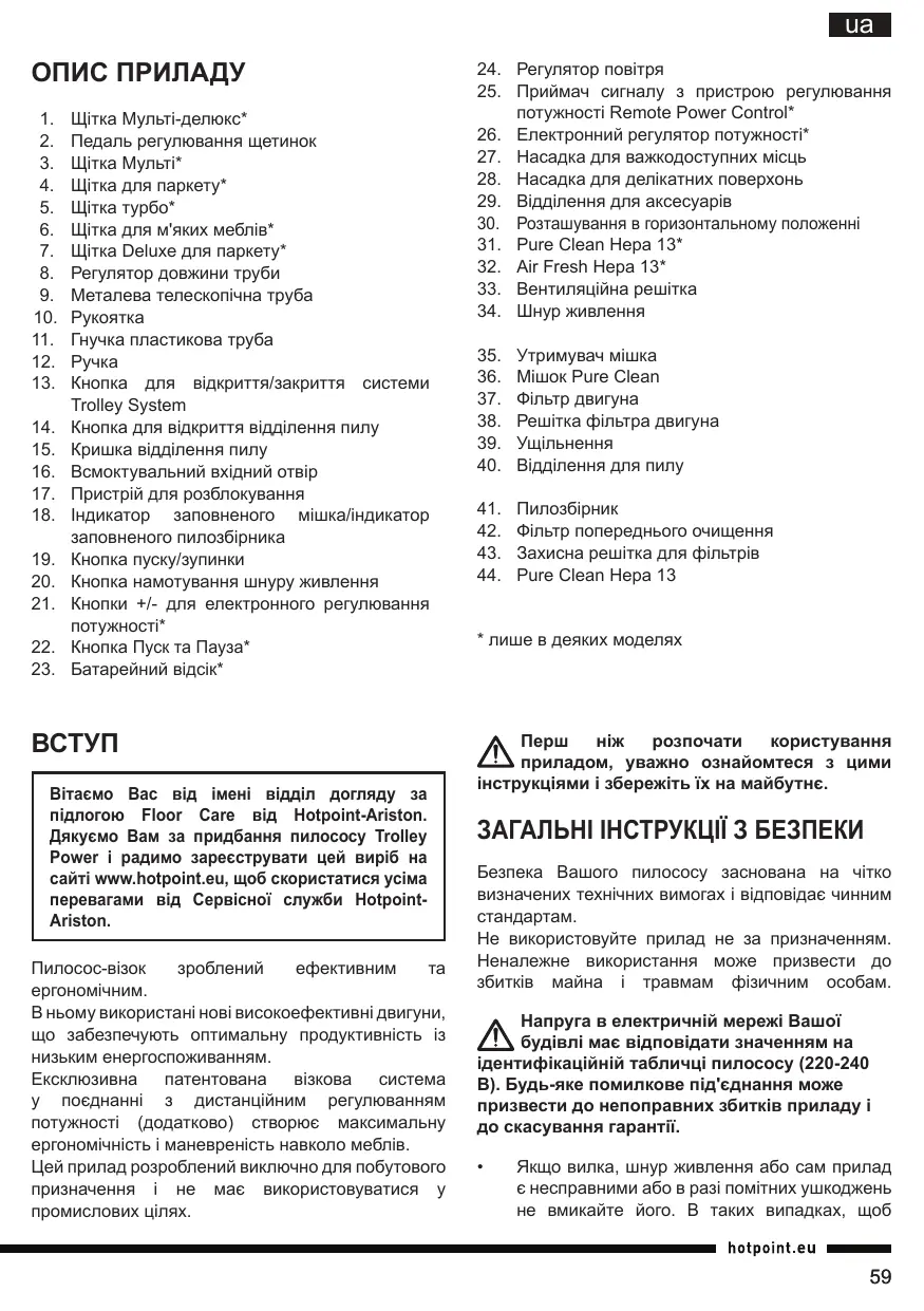 SL D10 BDB - Пилосос HOTPOINT - Безкоштовний посібник користувача
