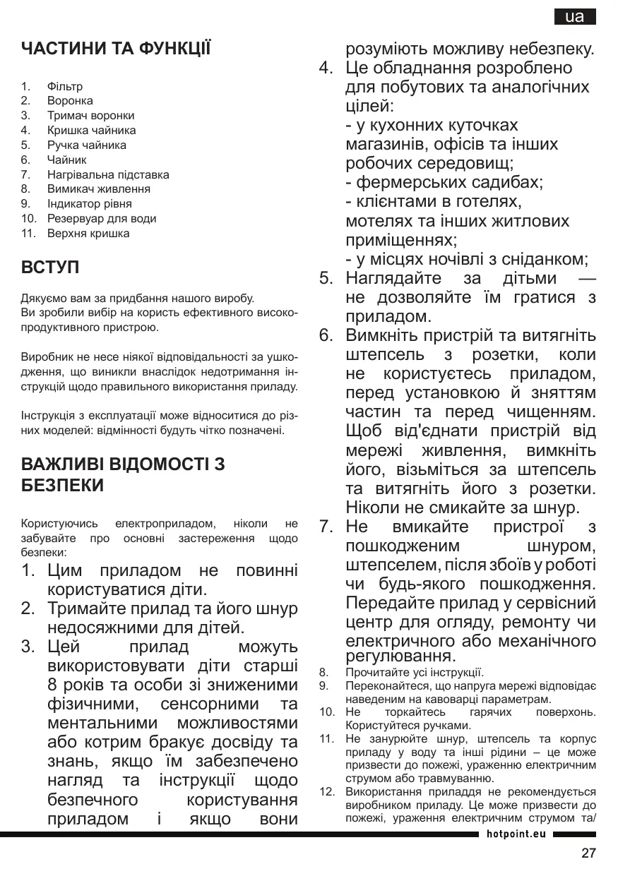 CM TDC DR0 - Електрична кавоварка HOTPOINT - Безкоштовний посібник користувача