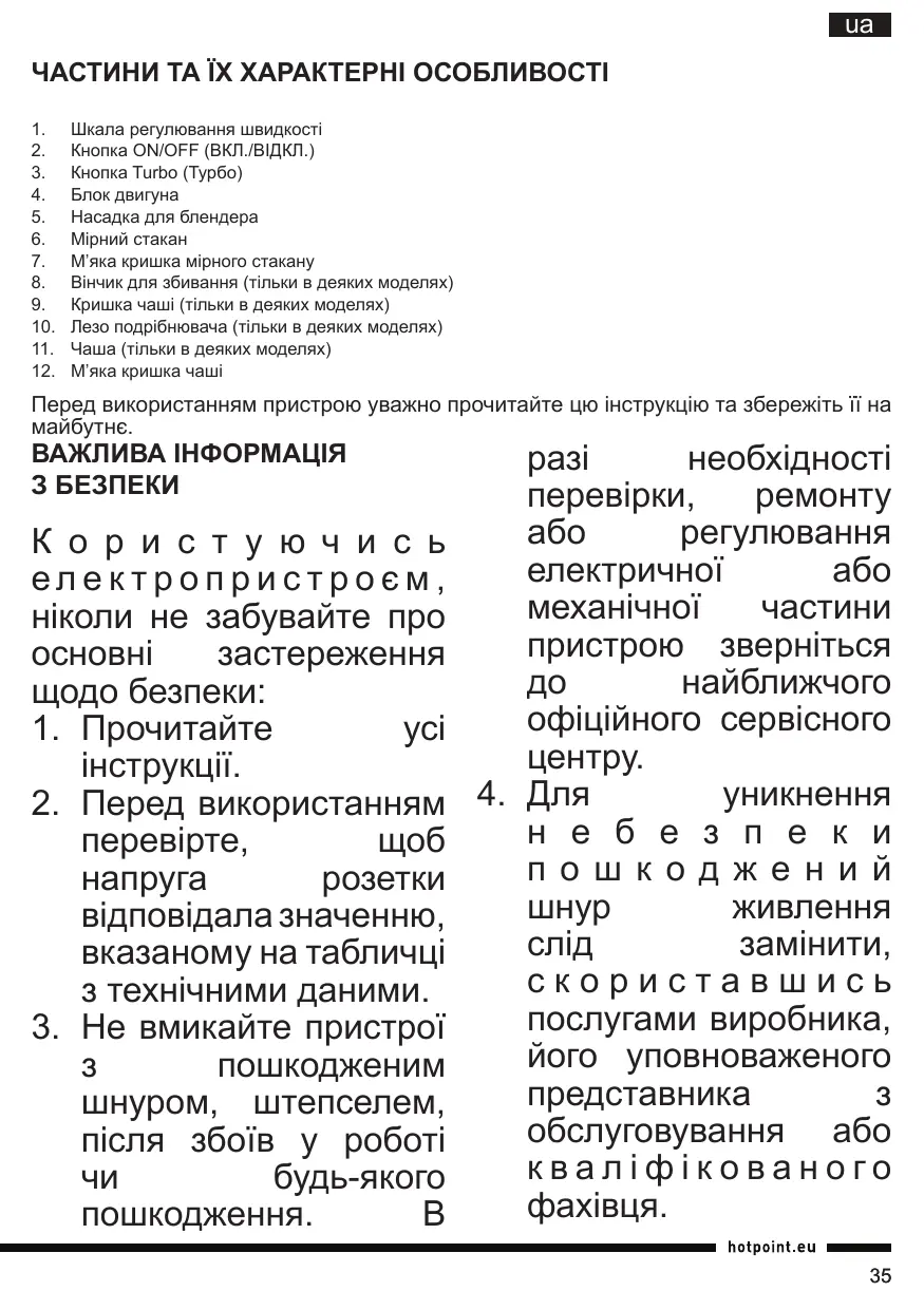HB 0603 DSL0 - Погружний блендер HOTPOINT - Безкоштовний посібник користувача