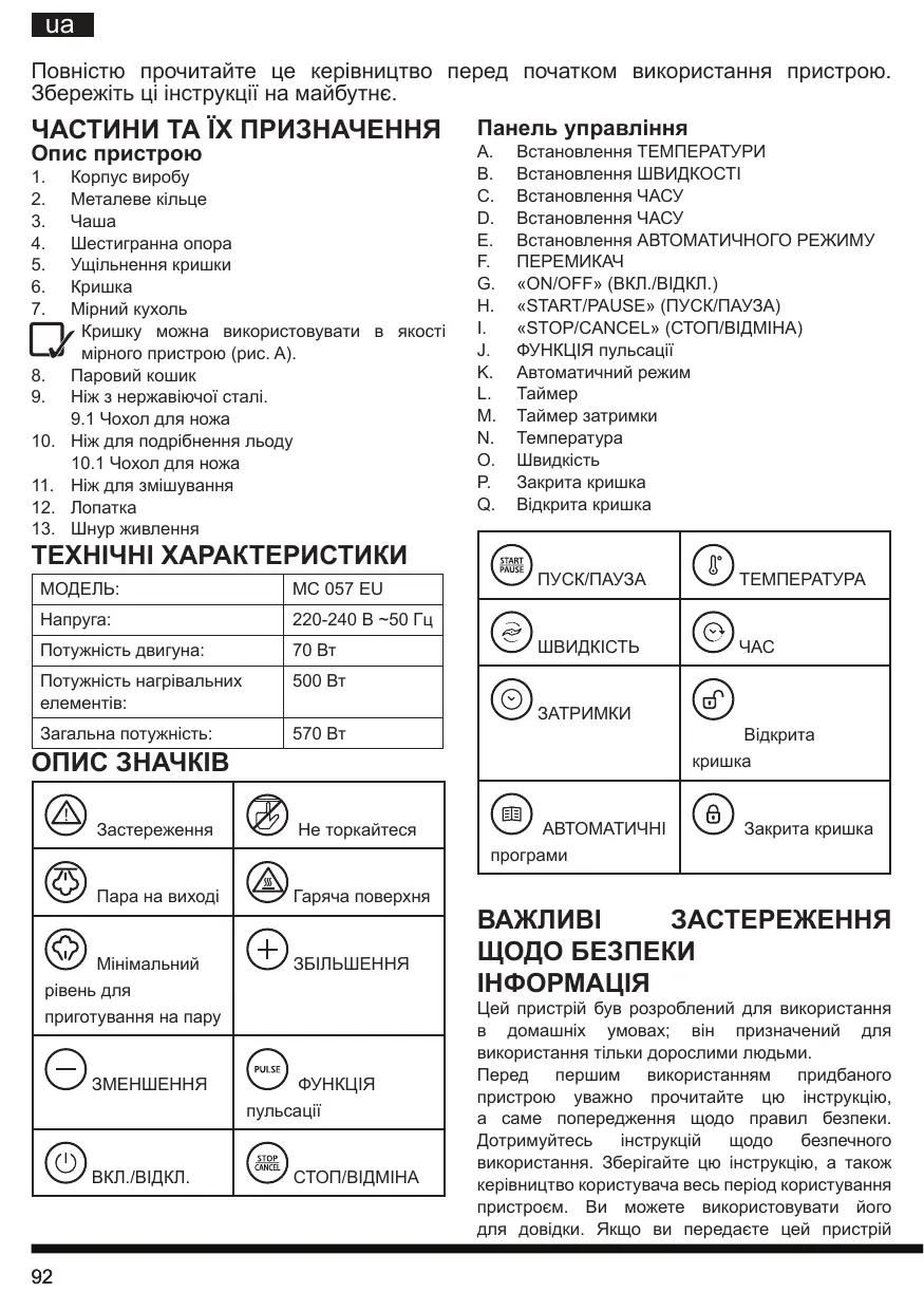 Знайдіть посібник до пристрою безкоштовно MC 057C AX0 HOTPOINT у форматі PDF.