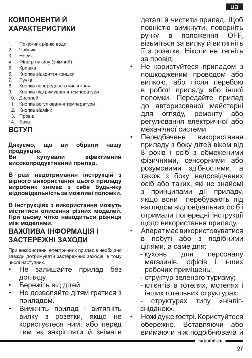 WK 24E AB0 - Електричний чайник HOTPOINT - Безкоштовний посібник користувача