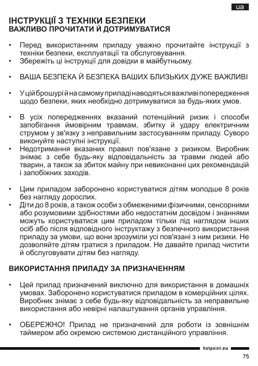 ПОСІБНИК КОРИСТУВАЧА SJ 15XL UP0 HOTPOINT