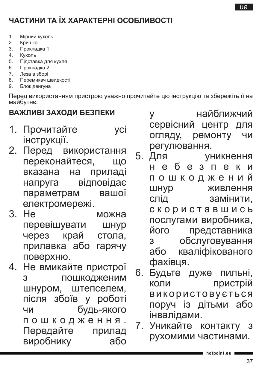 ПОСІБНИК КОРИСТУВАЧА TB 050 DXB0 HOTPOINT