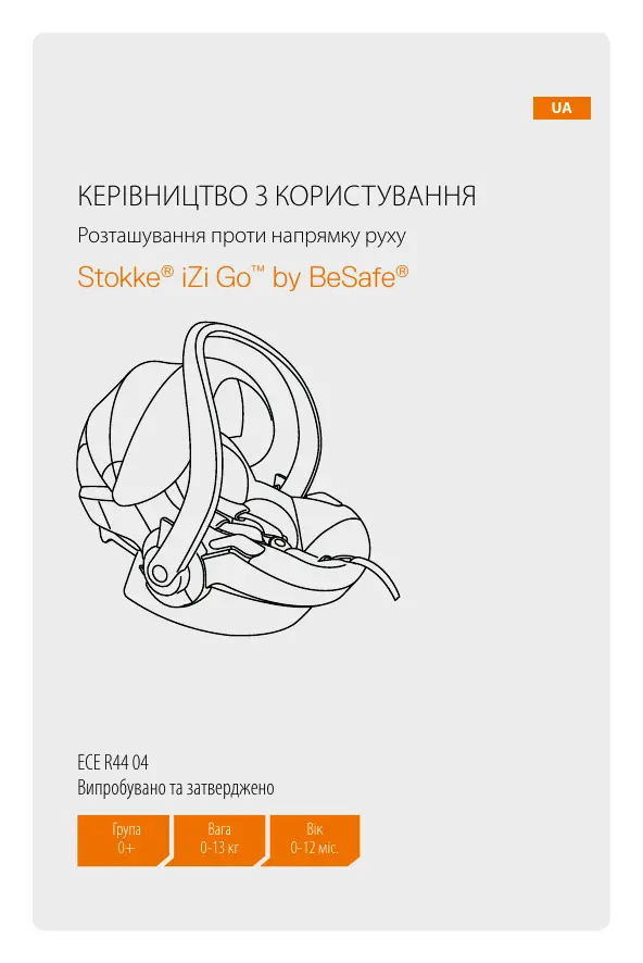 Зміст Попередження Вступ Найважливіші деталі Монтаж у автомобілі Припасування дитини до автокрісла Stokke® iZi Go™ виробництва BeSafe® .. Демонтаж Stokke® iZi Go™ виробництва BeSafe® Зняття та встановлення чохла Інструкції з чищення Використання Stokke® iZi Go™ виробництва BeSafe® з дитячим візком Stokke Гарантія Інформація для торговельного підприємства