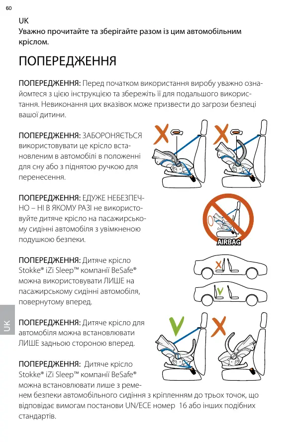 AVERTISSEMENT: installer UNIQUEMENT le Stokke® iZi Sleep™ de BeSafe® à l’aide d’une ceinture 3 points approuvée par la réglementation CEE/NU n° 16 ou par d’autres normes équivalentes.