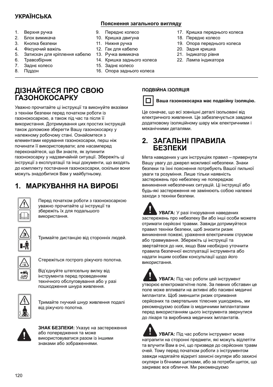1. SYMBOLES MARQUÉS SUR LE PRODUIT Lisez ce manuel d’instructions attentivement avant d’utiliser la tondeuse et conservez-le dans un endroit sûr pour toute référence future.