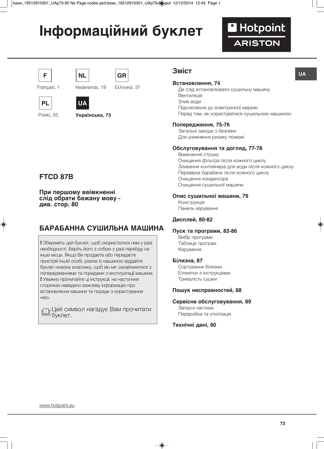 ПОСІБНИК КОРИСТУВАЧА ALE60V HOTPOINT
