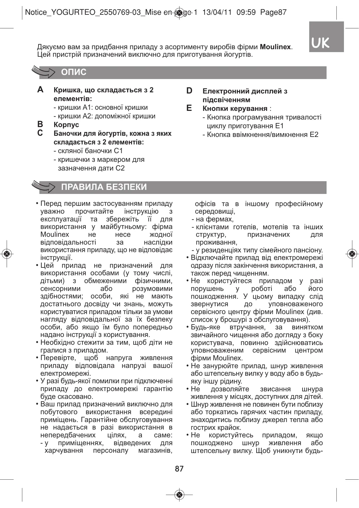 ПОСІБНИК КОРИСТУВАЧА YOGURTEO YG231E32 MOULINEX